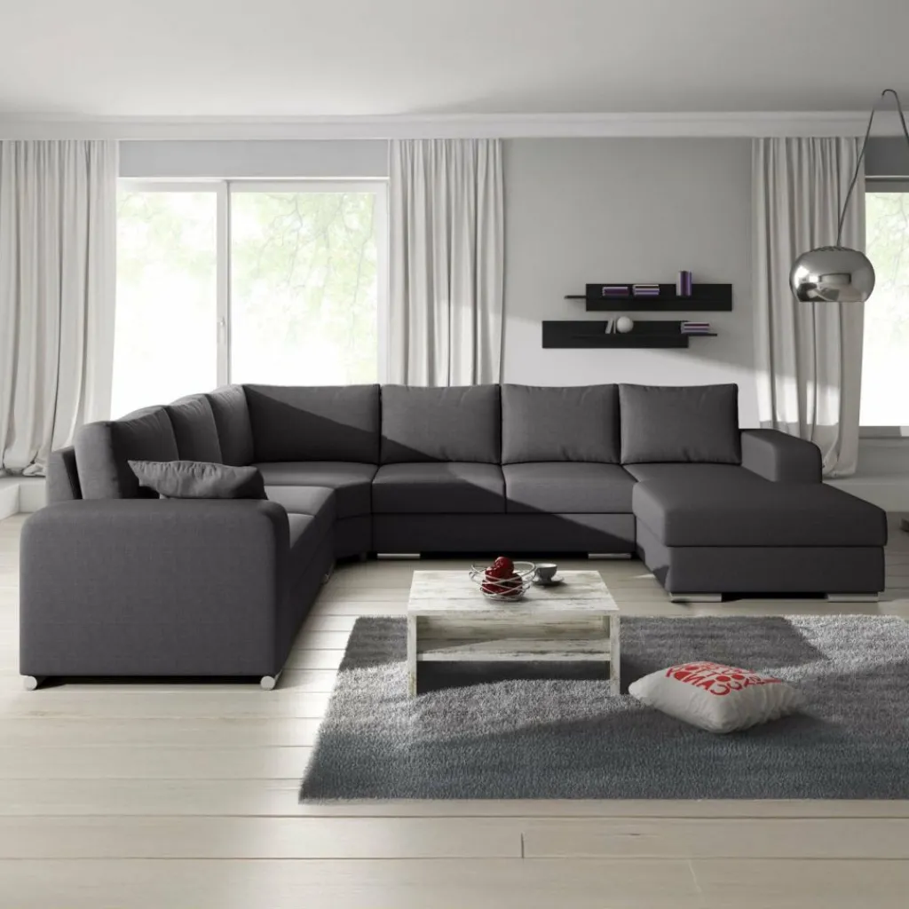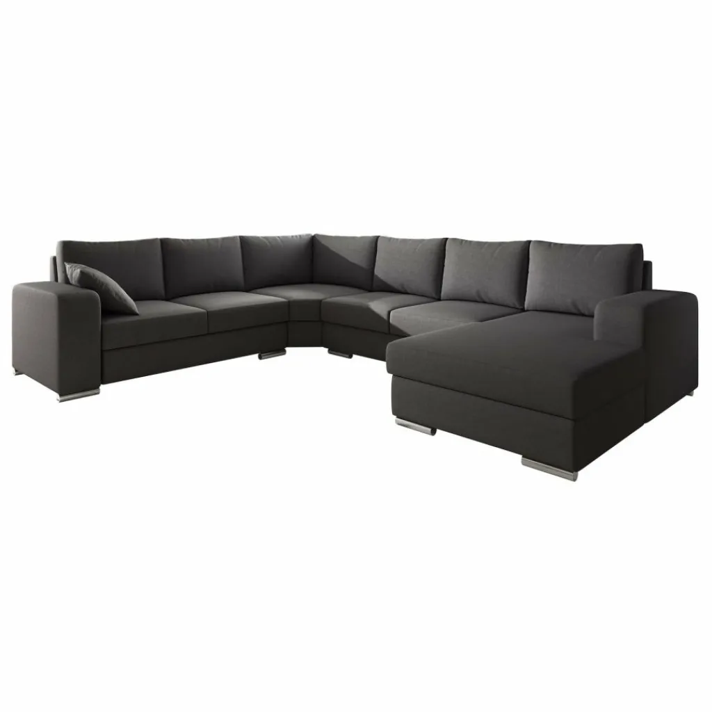 Hoekbank Adel is een strakke, ruime hoekbank met een tijdloos design. Deze praktische bank is voorzien van voldoende zitplaatsen voor het hele gezin. De bekleding is van een sterke stof in een donkergrijze kleur. De poten van deze hoekbank zijn afgewerkt in verchroomd kunststof.