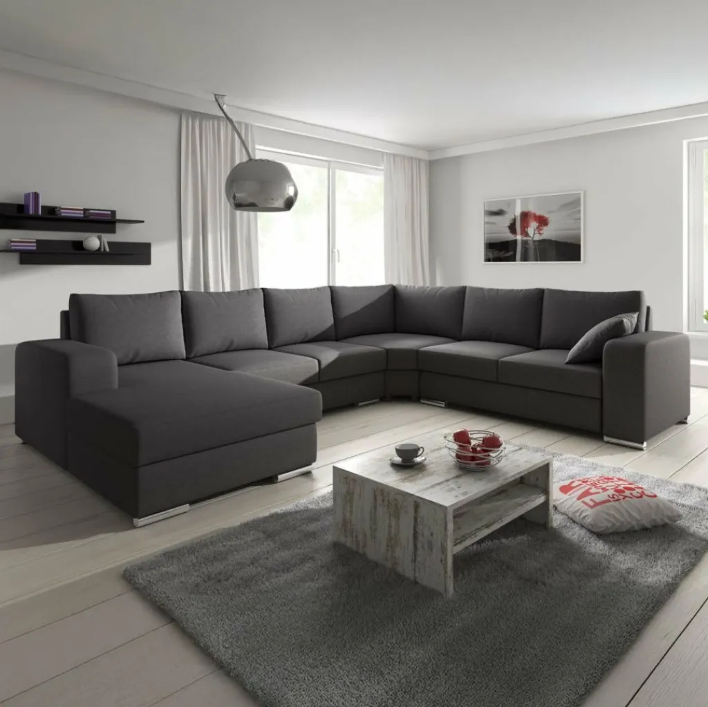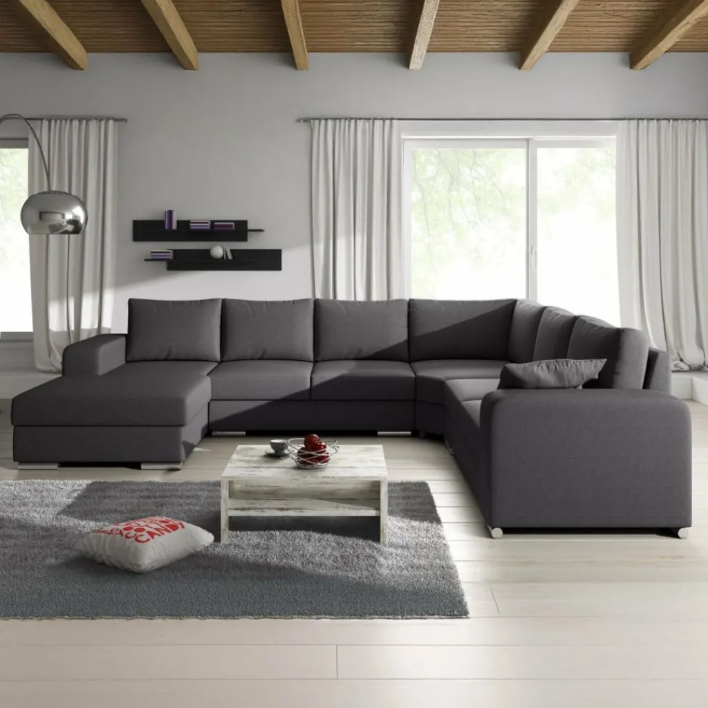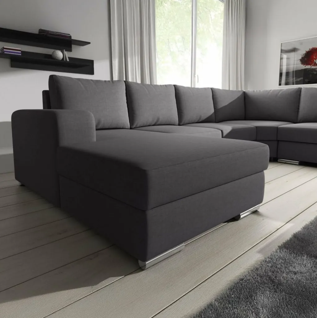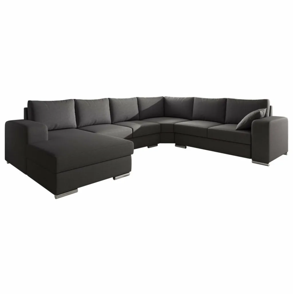 Hoekbank Adel is een strakke, ruime hoekbank met een tijdloos design. Deze praktische bank is voorzien van voldoende zitplaatsen voor het hele gezin. De bekleding is van een sterke stof in een donkergrijze kleur. De poten van deze hoekbank zijn afgewerkt in verchroomd kunststof.