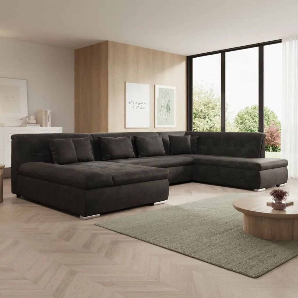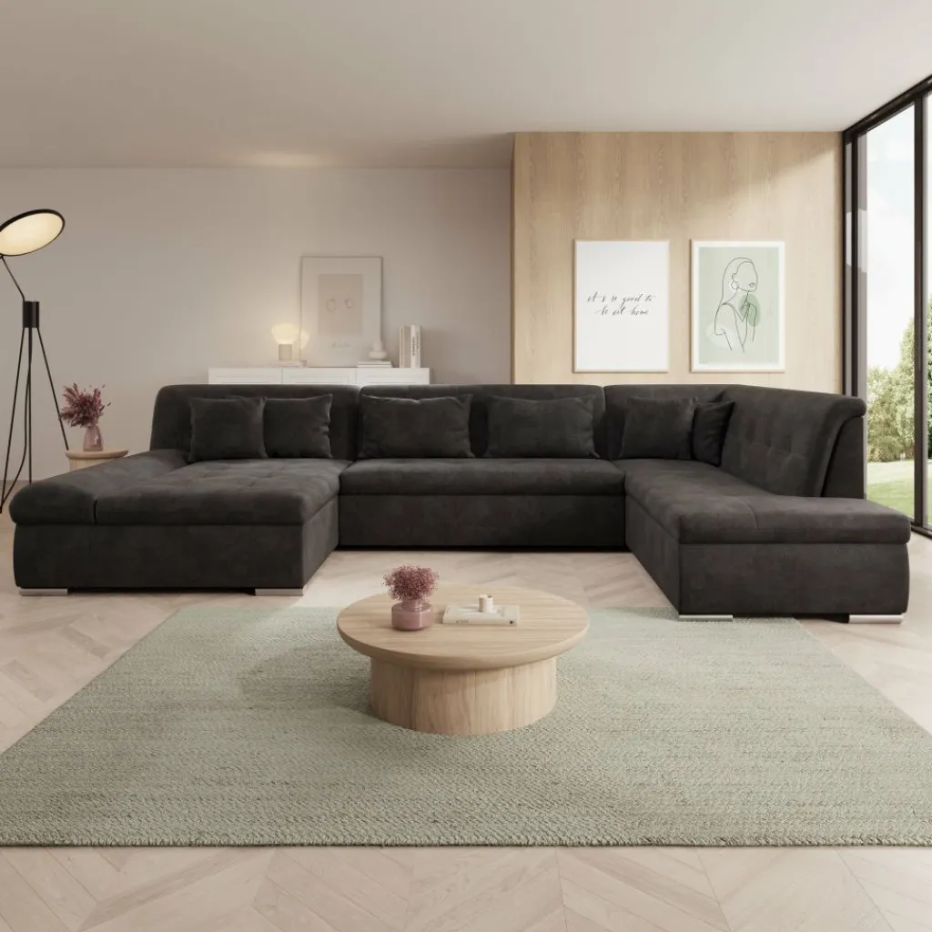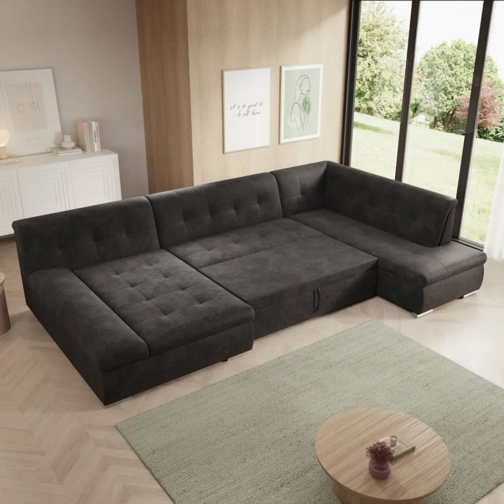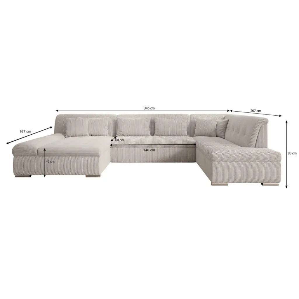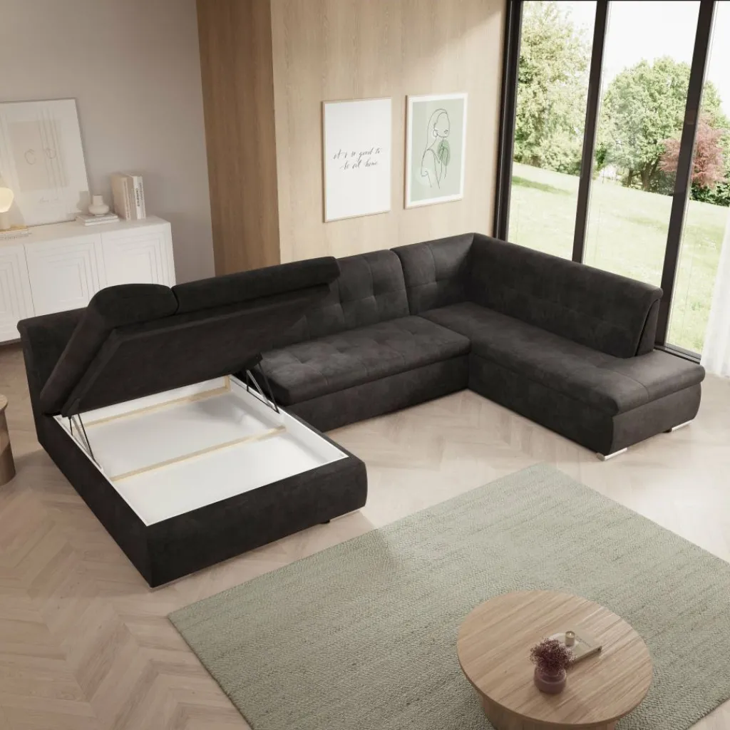 Hoekbank Alberta XL is een ruime en functionele U-vormige bank, ontworpen voor dagelijks comfort en praktisch gebruik. Dankzij de zachte ribstof en doordachte indeling past deze bank perfect in een modern interieur.