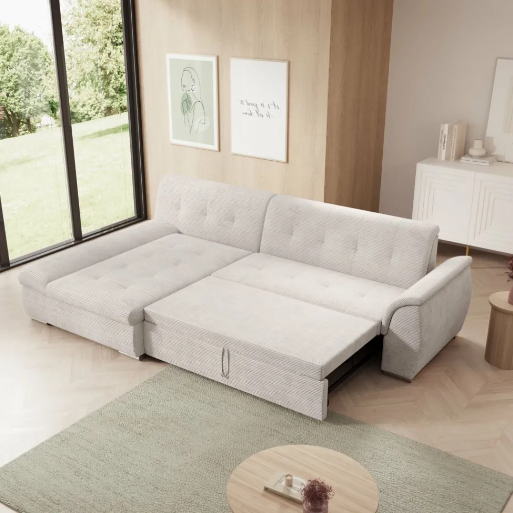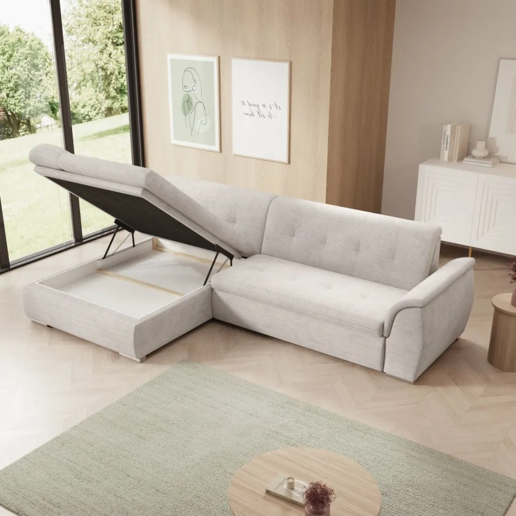 De Alberta is een enorm praktisch model aangezien het uitklapbaar is tot een slaapbank en er ook nog extra opbergruimte onder het lounge gedeelte zit.