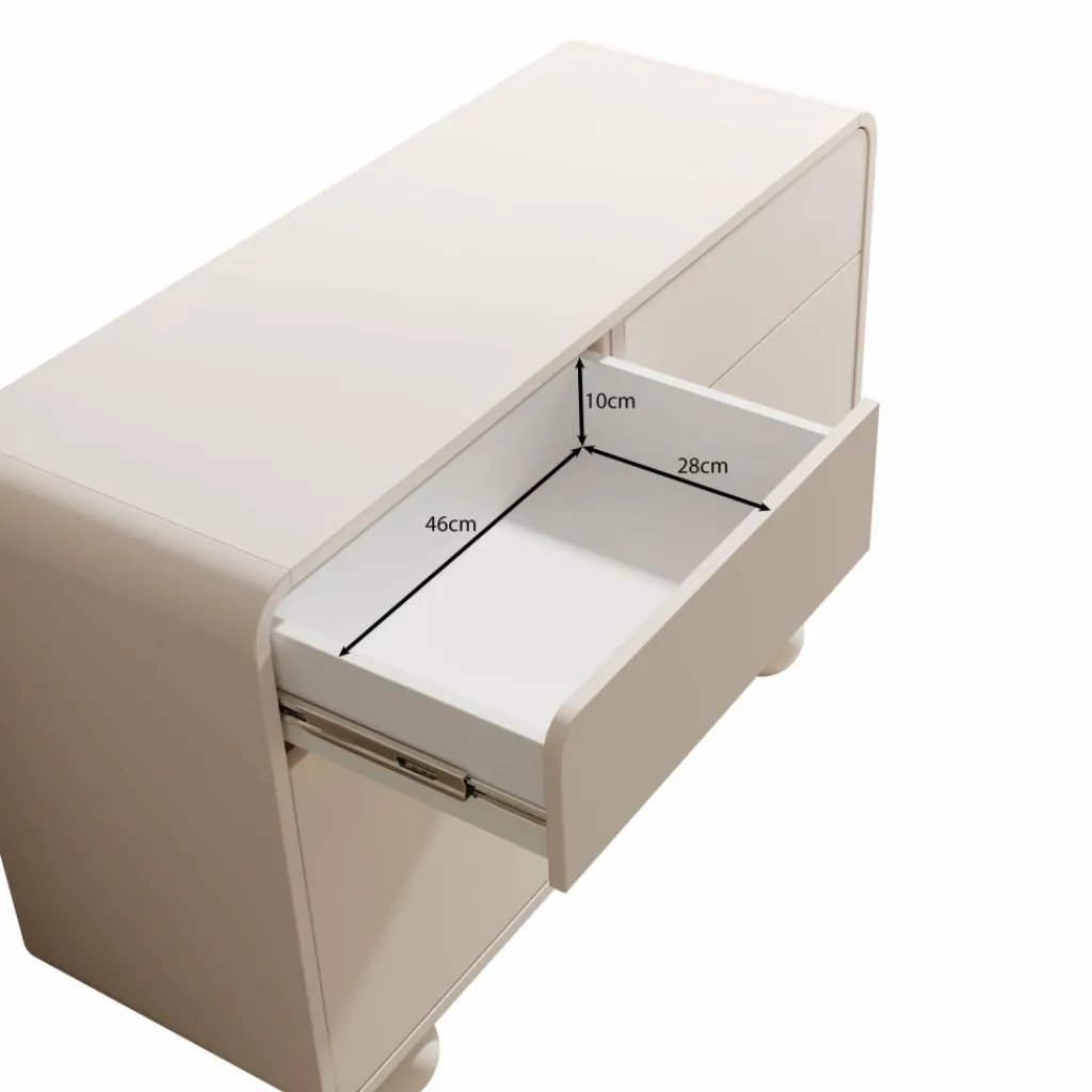 Dankzij de beige afwerking laat het dressoir zich eenvoudig combineren met diverse interieurstijlen.