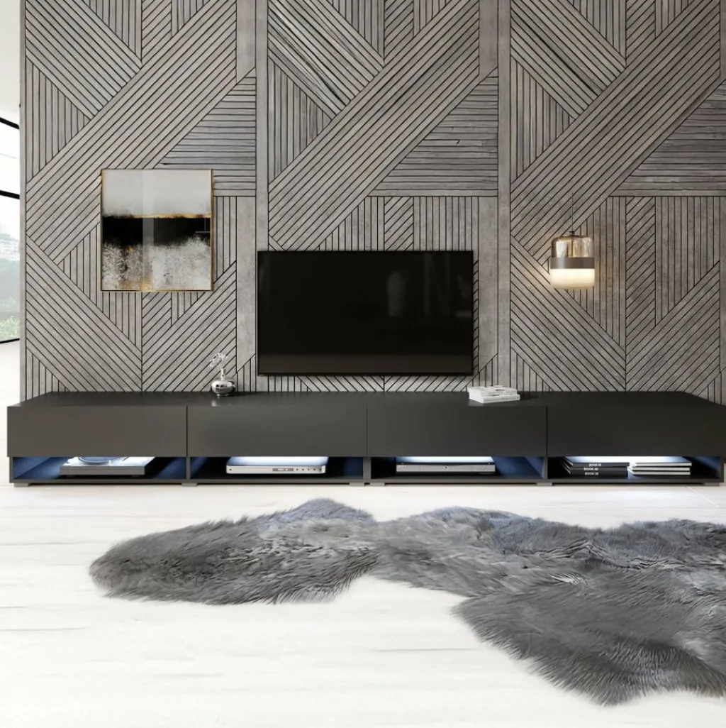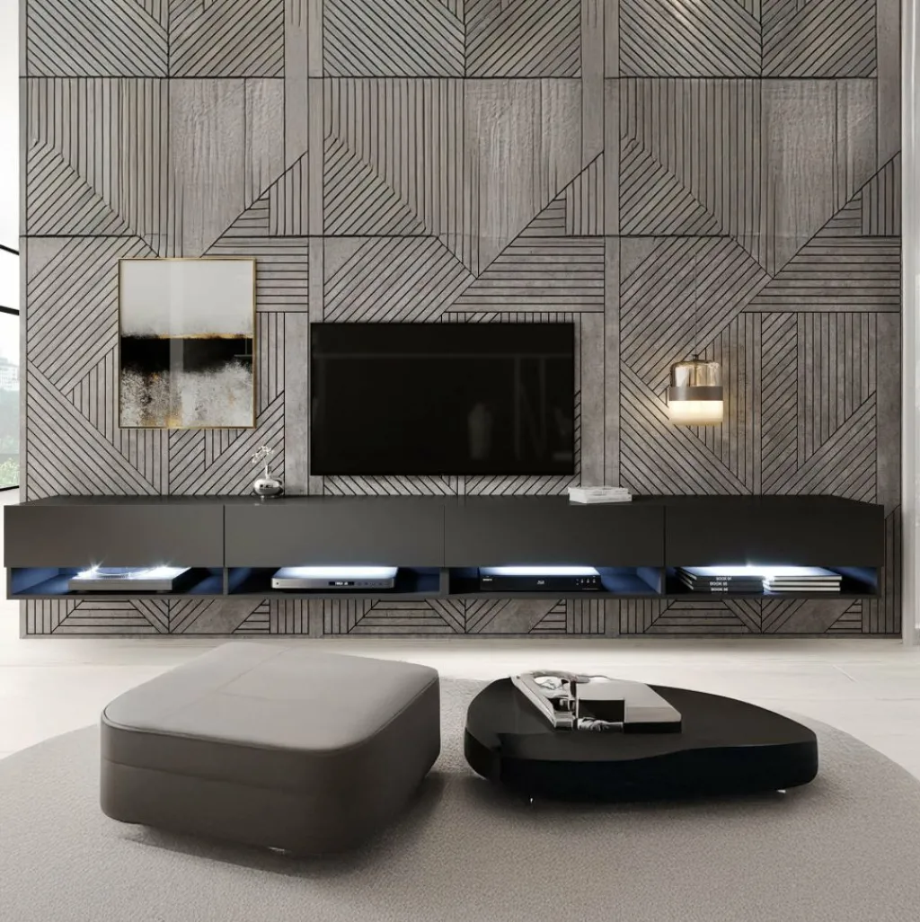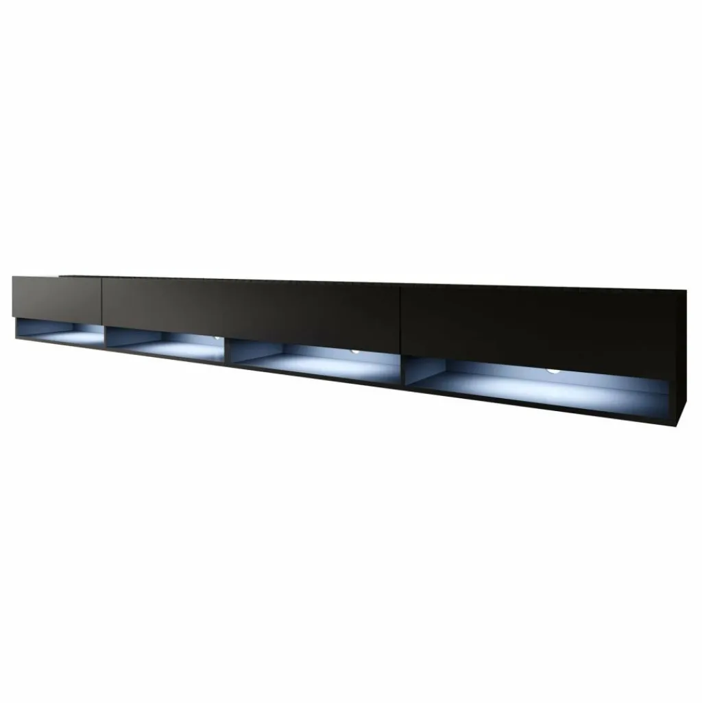 Het tv-meubel Asino is aan de muur op te hangen. Toch liever een staand model? Dat kan ook, door eenvoudig de bijgeleverde pootjes te monteren onder het meubel. De pootjes zijn zilverkleurig, gemaakt van kunststof en hebben een hoogte van 2 cm.