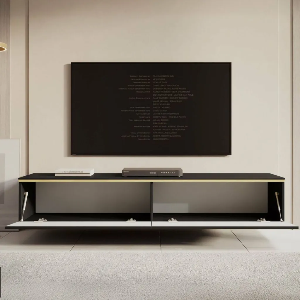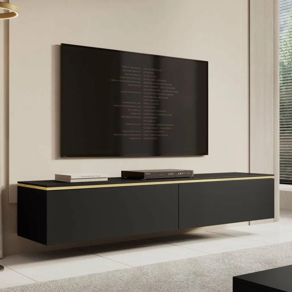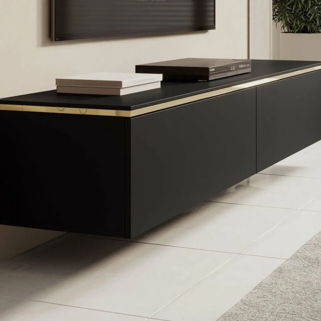 TV-Meubel Assunta is een modern tv-meubel in hotelchique stijl. Het meubel is gemaakt van een stevige spaanplaat constructie in mat zwarte kleur.