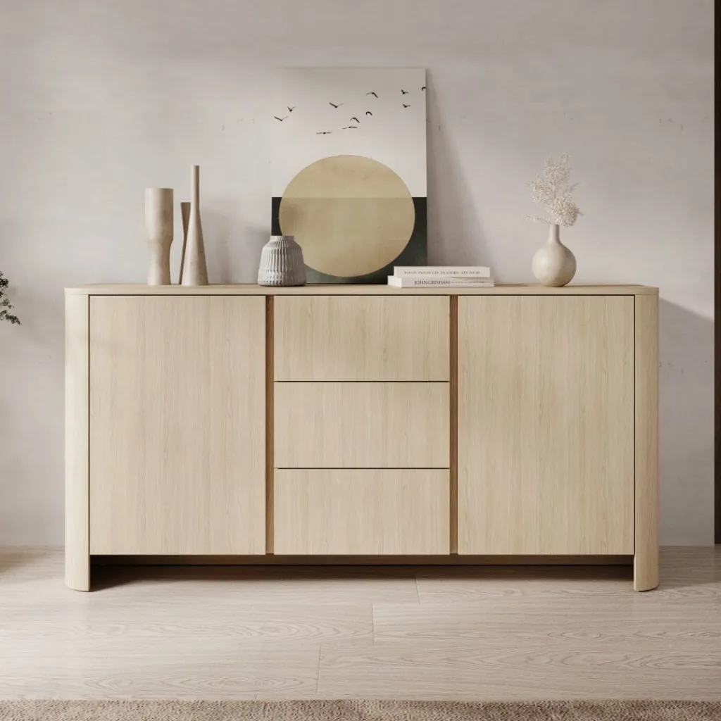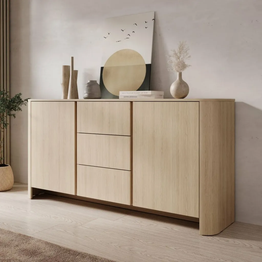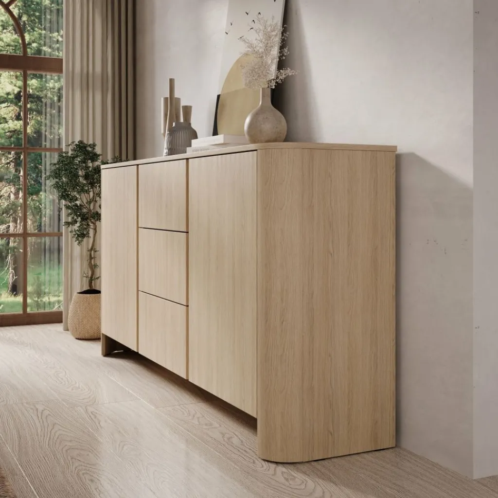 Dressoir Barbados is een elegant en praktisch meubel uitgevoerd in een warme eiken kleur. Het tijdloze ontwerp met afgeronde hoeken en een natuurlijke houtlook zorgt voor een sfeervolle uitstraling die in vrijwel ieder interieur tot zijn recht komt.