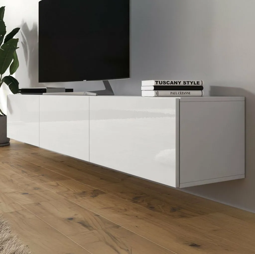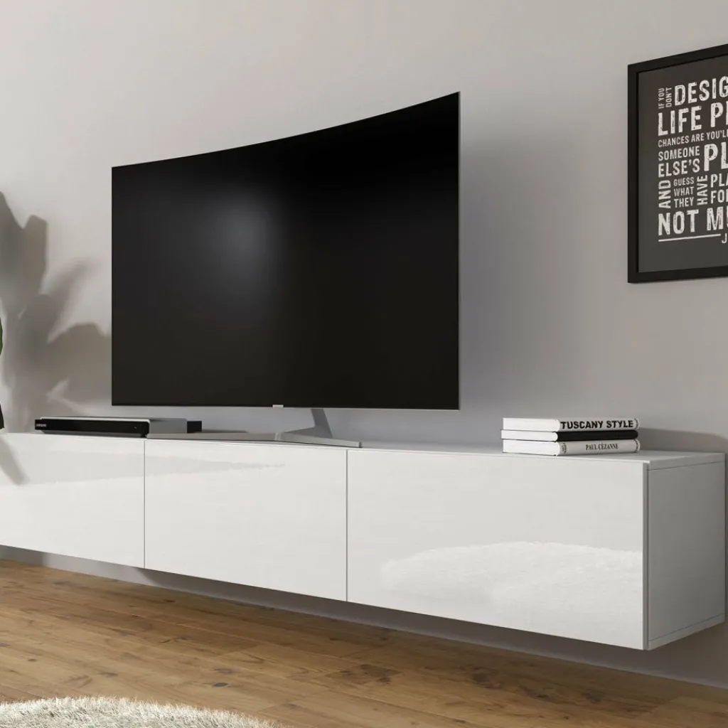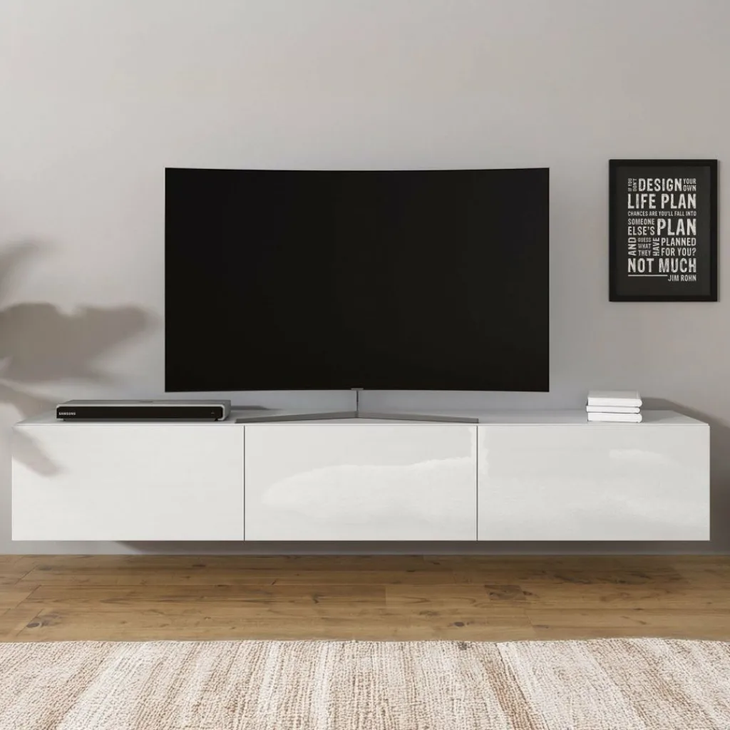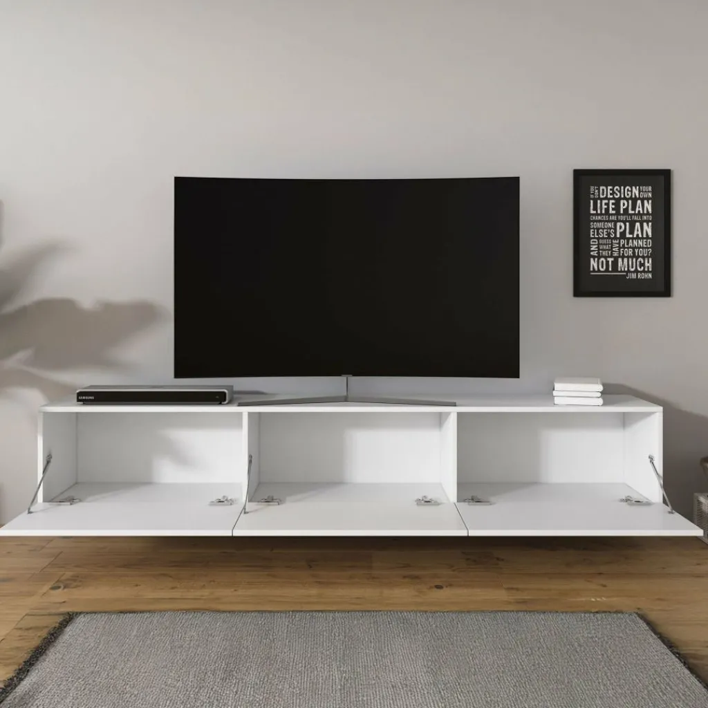 Het tv-meubel Bonzo is aan de muur op te hangen. Toch liever een staand model? Dat kan ook, door eenvoudig de bijgeleverde pootjes te monteren onder het meubel. De pootjes zijn zilverkleurig, gemaakt van kunststof en hebben een hoogte van 2 cm.