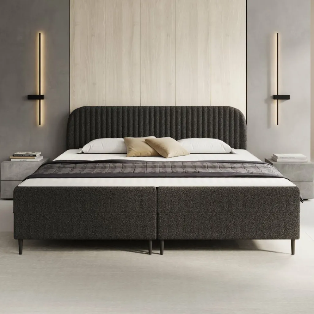 De Bosque boxspring in 200×200 cm biedt een extra ruime slaapopstelling met veel opbergmogelijkheden. De zachte teddystof in zwart zorgt voor een rustige, luxe uitstraling. Het frame is vervaardigd uit 16 mm meubelplaat en hout en het hoofdbord is voorzien van 2 cm T25-schuim voor een comfortabele ondersteuning.