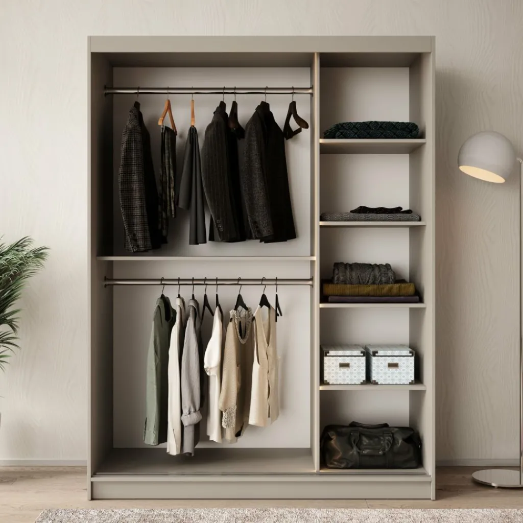 Binnenin vind je een praktische indeling met ruime planken en een handig hanggedeelte, waardoor je kleding en accessoires netjes kunt ordenen.