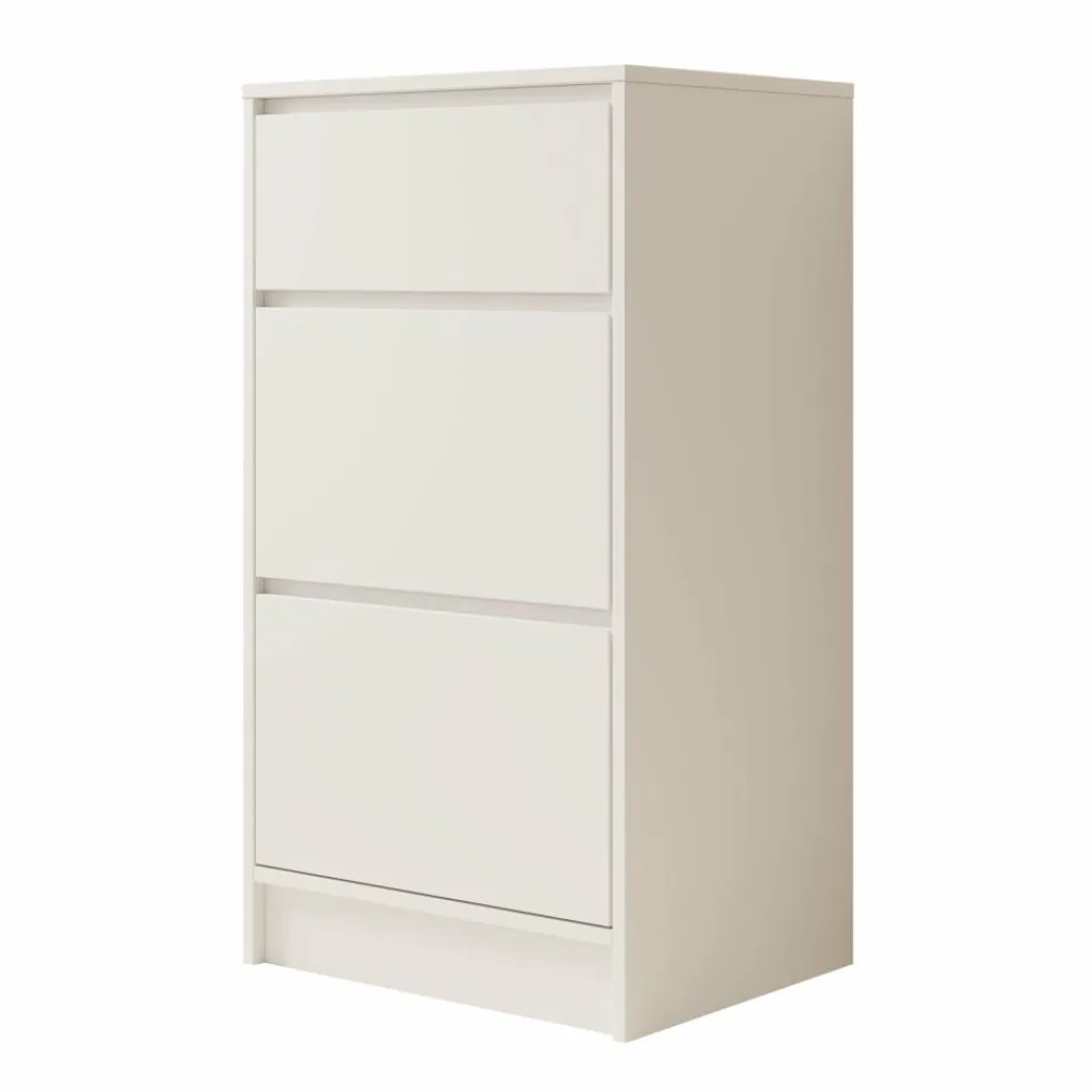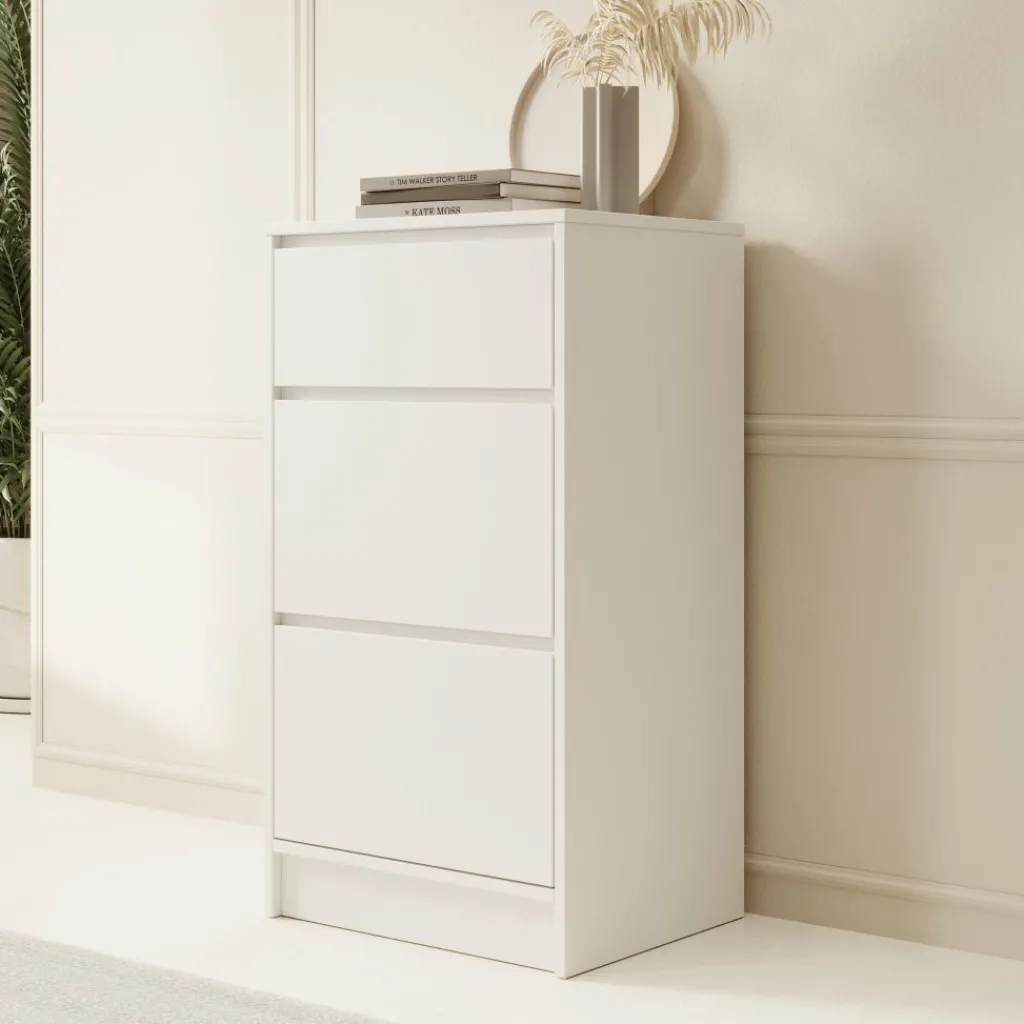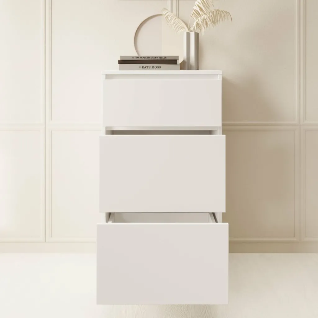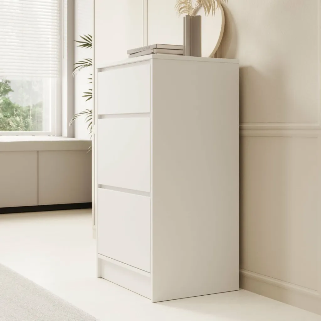 De kast is voorzien van drie ruime lades waarin je eenvoudig kleding, linnengoed of andere spullen kunt opbergen. Dankzij de afmetingen van 50x40x93 cm is hij ideaal voor kleinere ruimtes zoals de slaapkamer, hal of kantoor, zonder in te leveren op bergruimte.