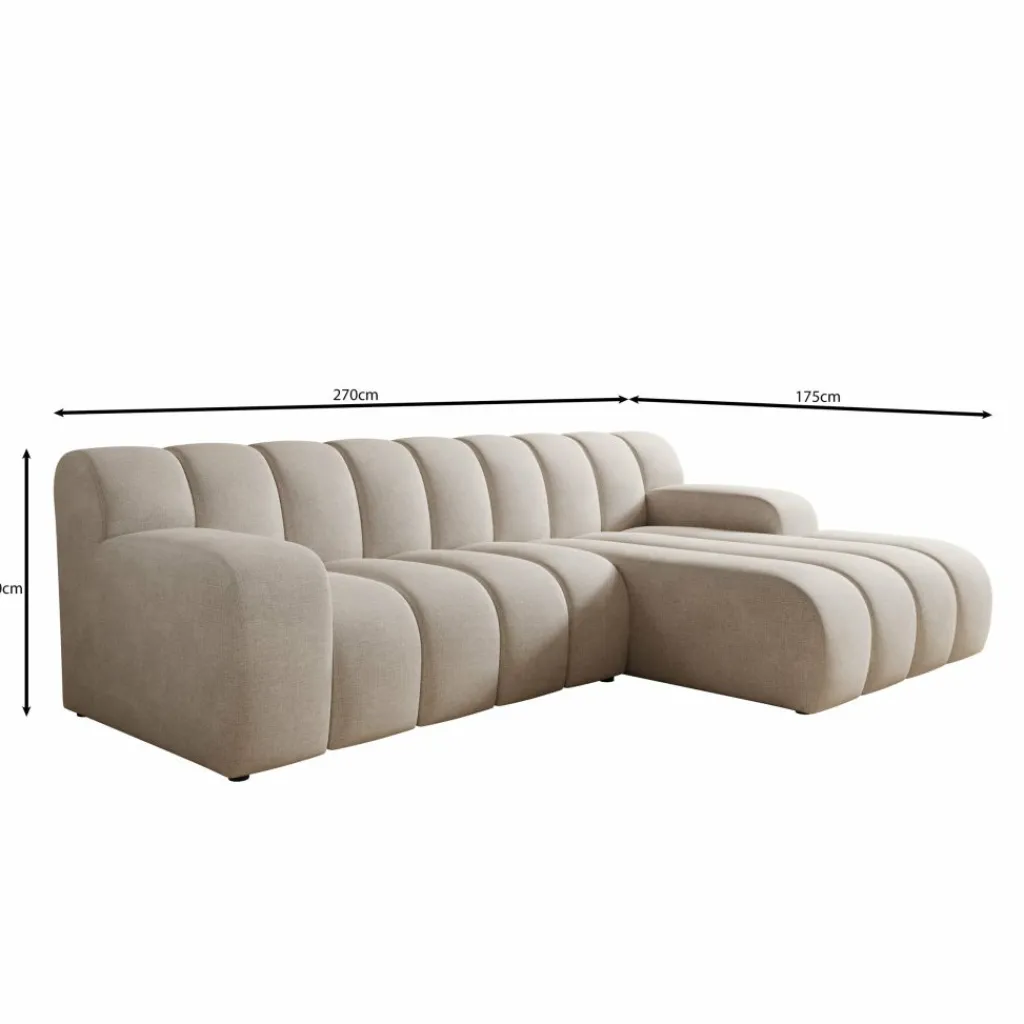 Ruim en praktisch Met 270 cm breedte en een chaise longue van 175 cm is er genoeg plek voor meerdere personen. De rechter uitvoering betekent dat de chaise longue aan de rechterkant zit als je de bank van voren bekijkt.