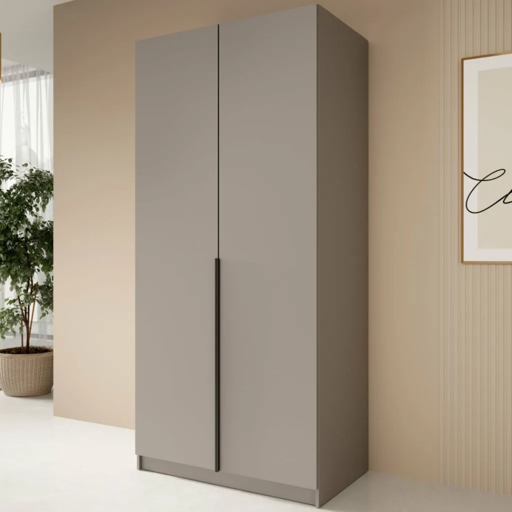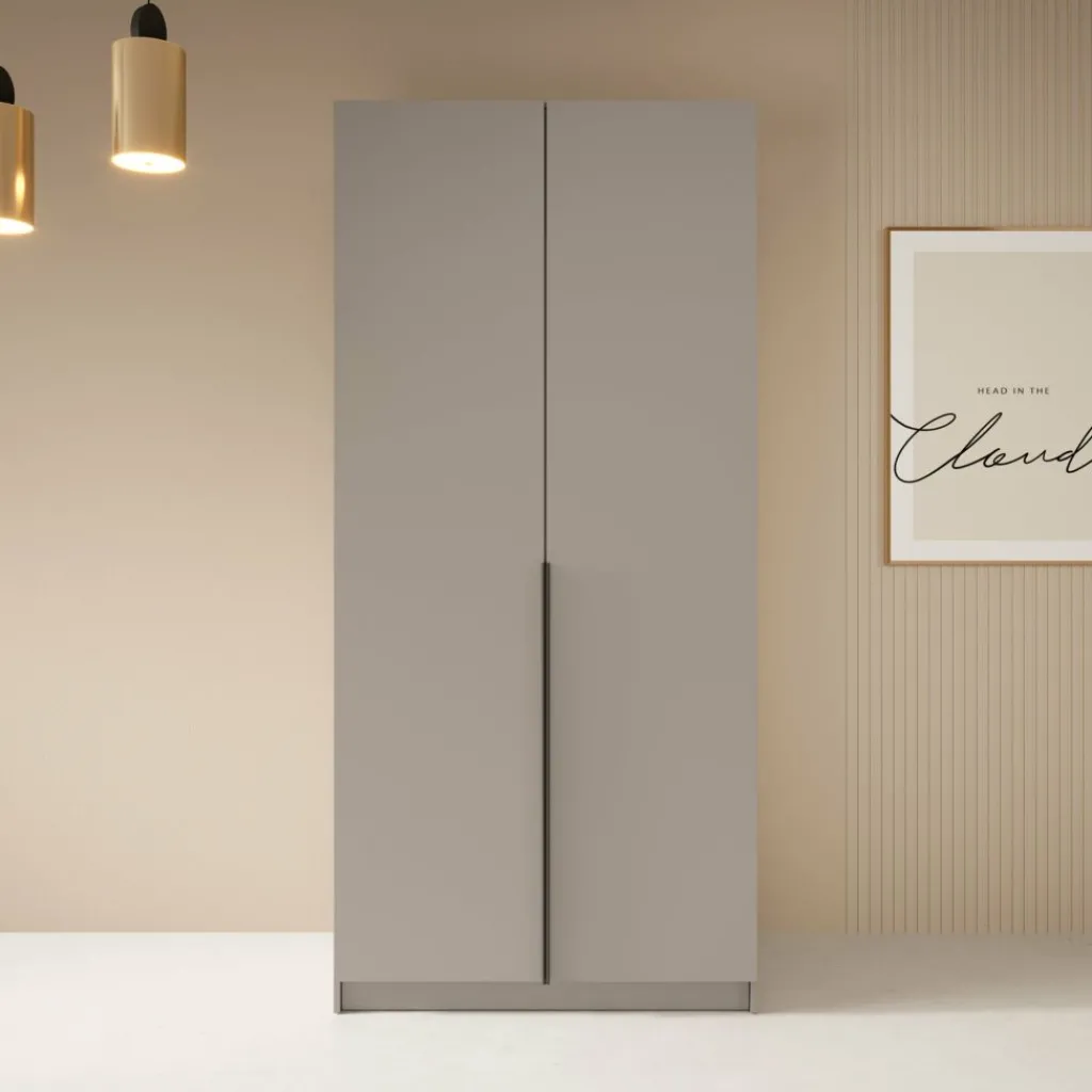 Kledingkast Bruno is een moderne en praktische kast met een stijlvolle uitstraling. De kast is uitgevoerd in beige met een opvallende, zwarte handgreep over de volledige lengte van de deuren. Dankzij het tijdloze ontwerp past deze 2-deurs kledingkast perfect in uiteenlopende interieurs.