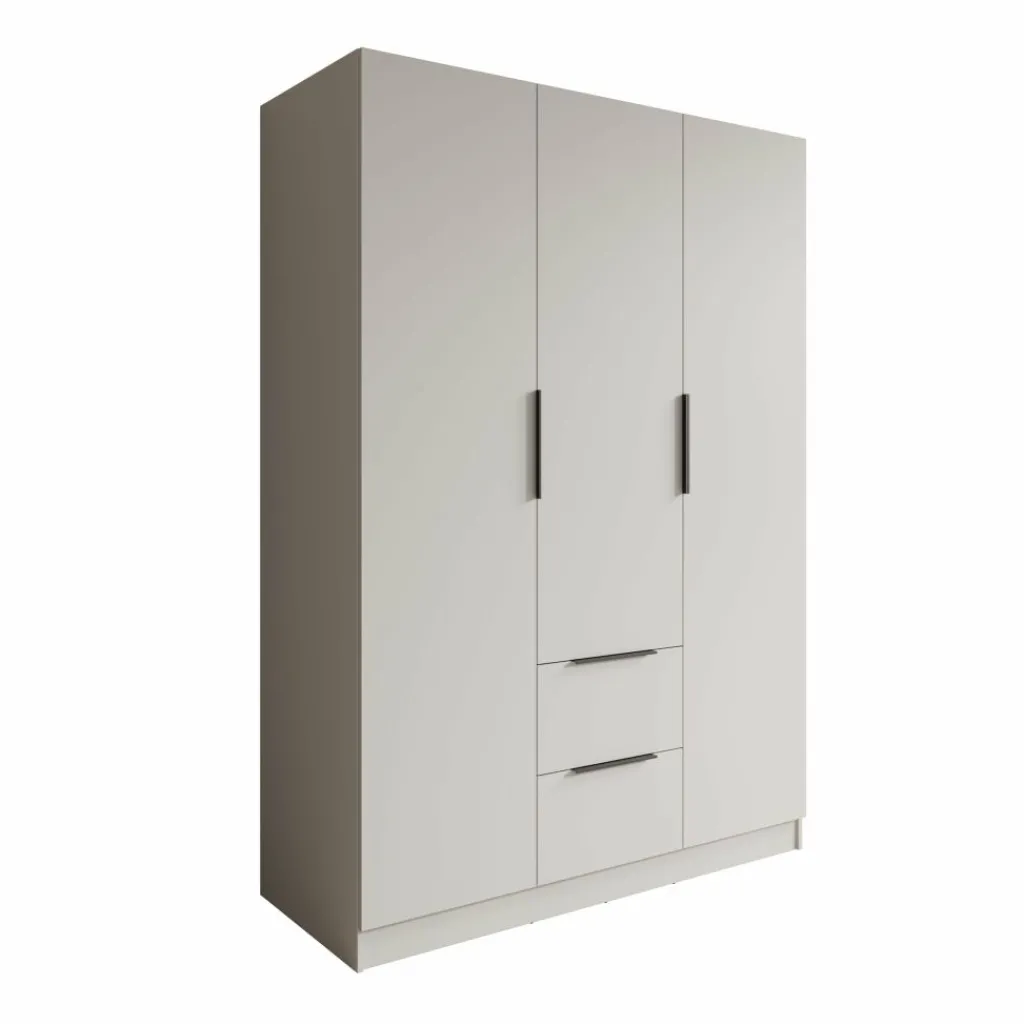 Caliero kledingkast is een staande kast met drie draaideuren en twee lades, uitgevoerd in een witte afwerking. Met een afmeting van 150x60x216 cm biedt deze kast een overzichtelijke indeling voor het opbergen van kleding en accessoires.