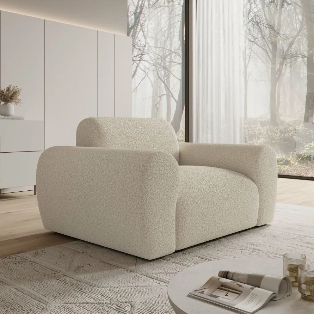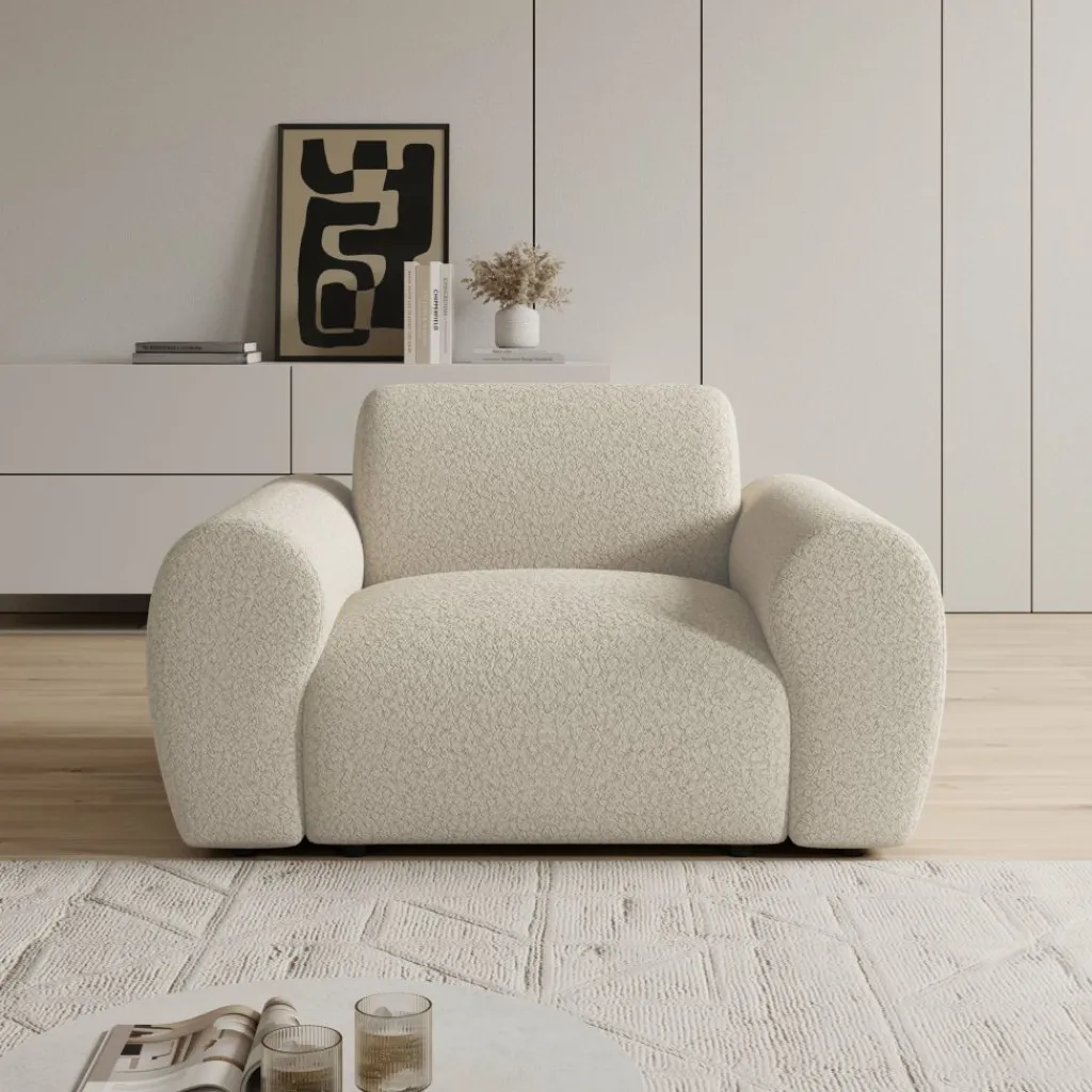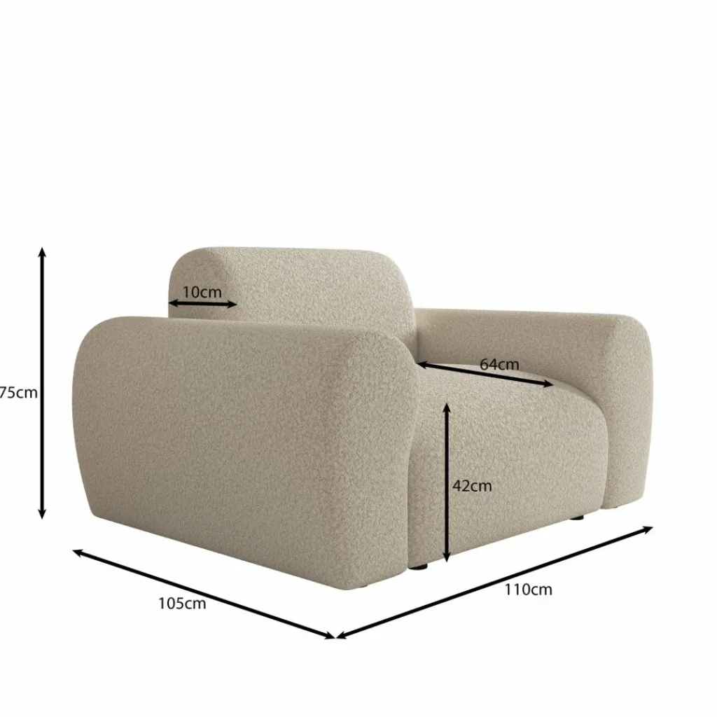 Het Canyon fauteuil nodigt uit om direct in weg te zakken. Dankzij de ronde vormen en de zachte teddystof voelt hij ruim en comfortabel aan, ideaal voor een ontspannen moment met een boek of een kop koffie. De neutrale beige tint maakt het eenvoudig om hem te plaatsen in verschillende interieurs, van modern tot warm minimalistisch.