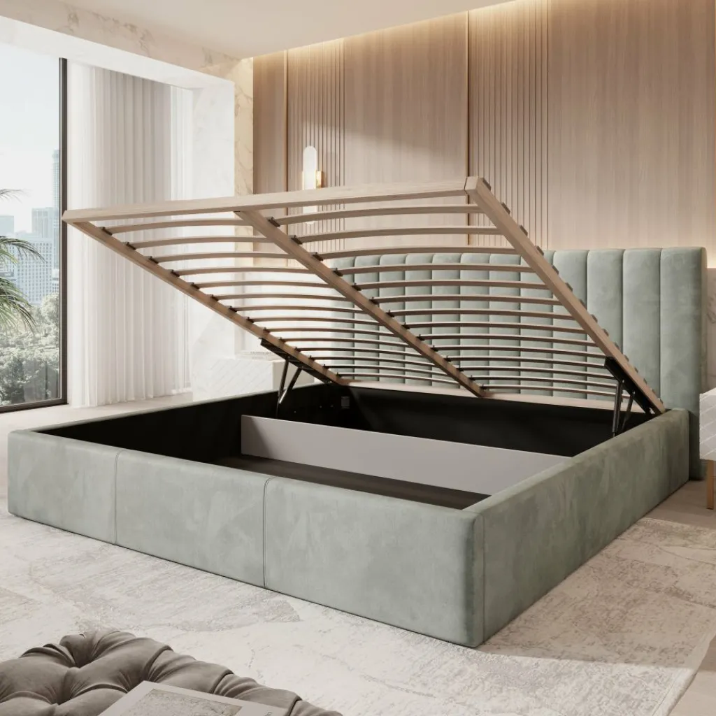 Onder de lattenbodem bevindt zich praktische opbergruimte, ideaal om beddengoed, kussens of andere spullen netjes op te bergen.
