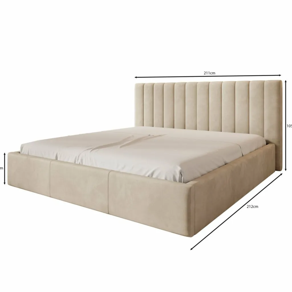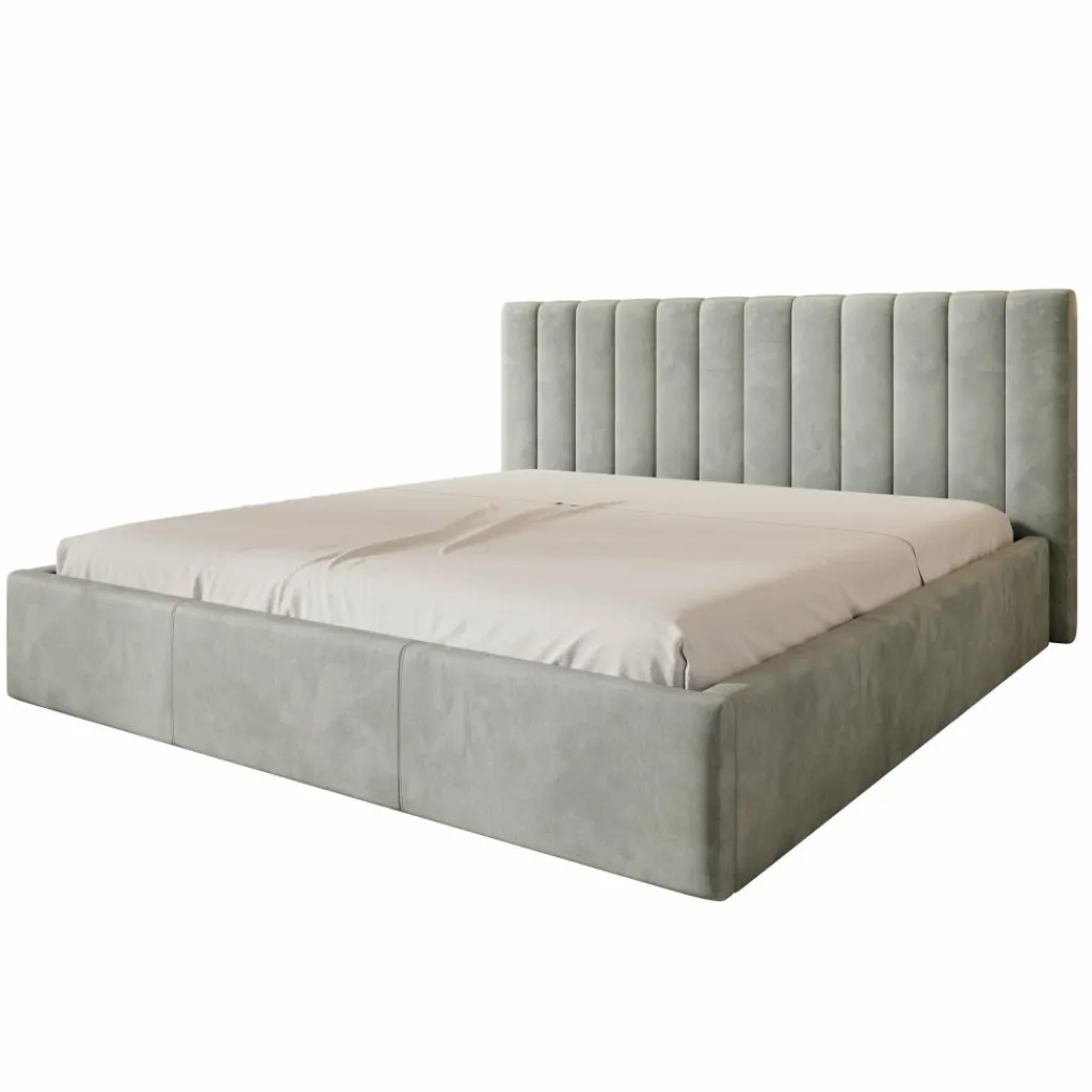 Tweepersoonsbed Chief is een modern bed in grijze kleur, volledig bekleed met een sterke en onderhoudsvriendelijke velvet stof. Het hoofdbord is voorzien van verticale siernaden, wat het bed een elegante uitstraling geeft.