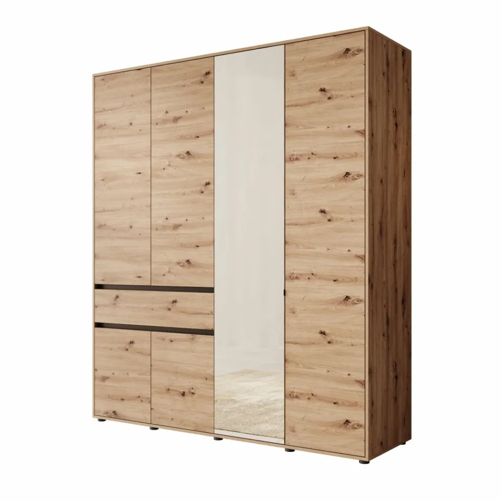 Cirelle 2 is een ruime kledingkast met een breedte van 183 cm en een hoogte van 211 cm. De uitvoering in eikenpatroon geeft het meubel een natuurlijke houtlook die goed past in zowel moderne als tijdloze slaapkamers.