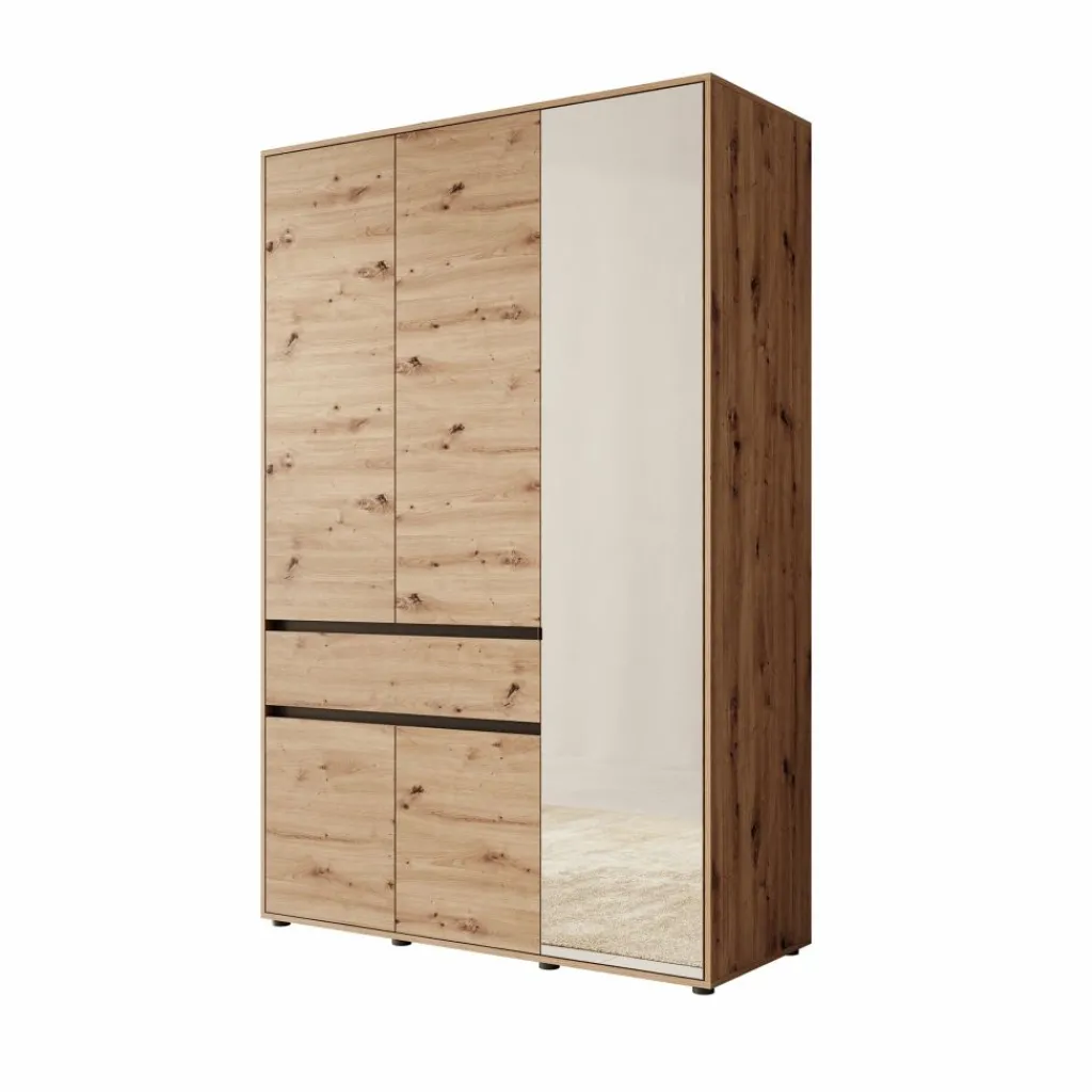 De Cirelle kledingkast 3-deurs in eikenpatroon is een ruime en functionele opbergkast met een warme, natuurlijke uitstraling. Met een breedte van 138 cm, een diepte van 55 cm en een hoogte van 211 cm benut deze kast de hoogte van de kamer optimaal en biedt hij volop ruimte voor kleding en accessoires.