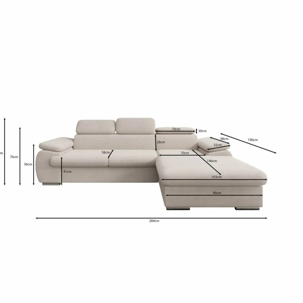 Deze variant is rechts: wanneer je recht voor de bank staat, bevindt het loungegedeelte zich aan de rechterkant.