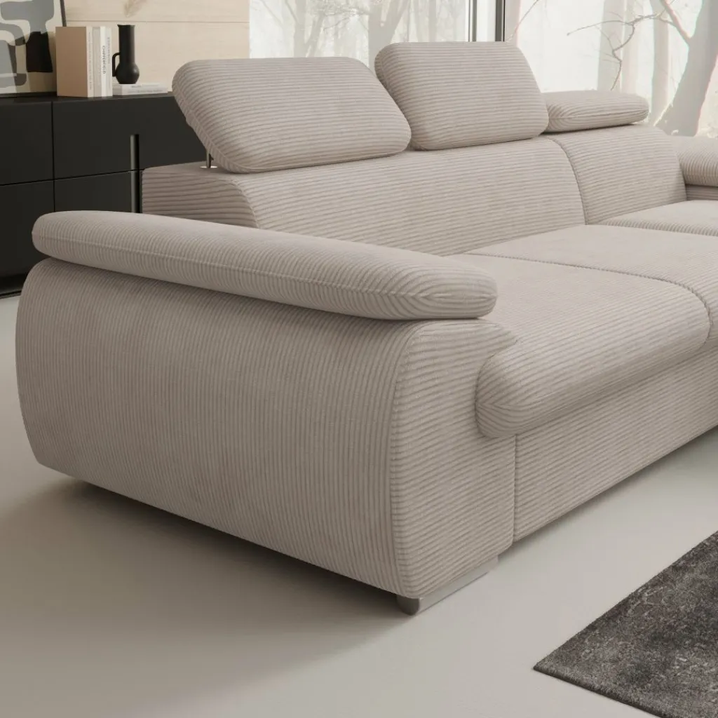 Hoekbank Cordoba is een comfortabele L-vormige bank met een eigentijdse uitstraling. De combinatie van het ruime loungegedeelte en de 2-zitsbank zorgt ervoor dat je met 3 tot 4 personen op de bank kunt zitten. De Cordoba is bekleed met een zachte ribstof in een warme beige kleur die moeiteloos past in elk interieur.