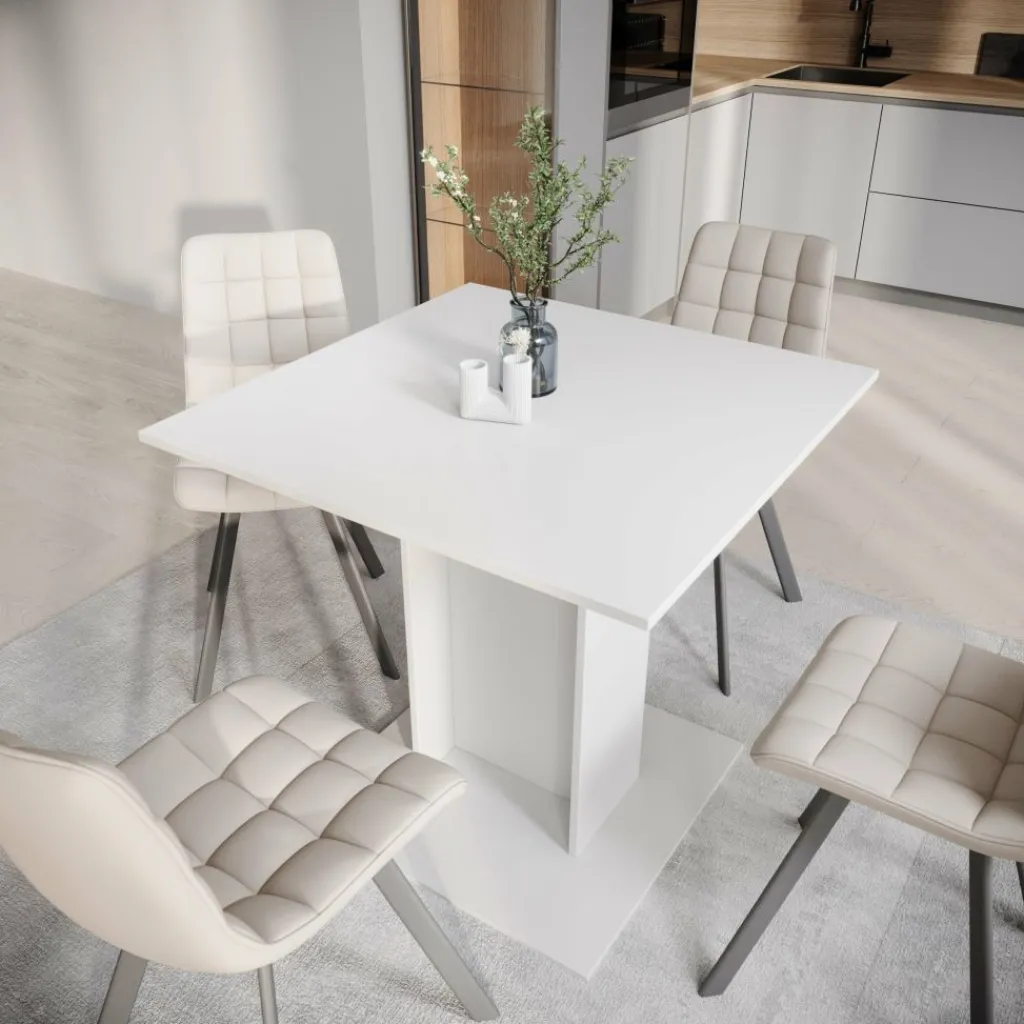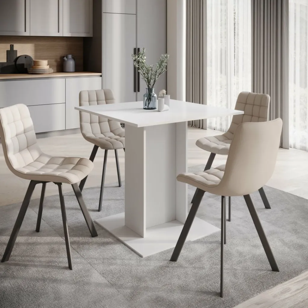 De Cova eetkamertafel is een compacte tafel die geschikt is voor kleinere eetruimtes, appartementen of keukens. Met een afmeting van 80 x 80 x 76 cm biedt de tafel plaats aan twee tot vier personen en neemt hij weinig vloeroppervlak in.