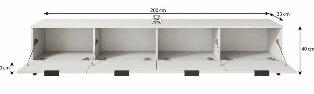 De Delgado beschikt over 4 kleppen die te openen zijn met zwarte handgrepen. Op de voorkant van de deuren zit een lattenpatroon. De tv kast staat op zwart metalen poten.