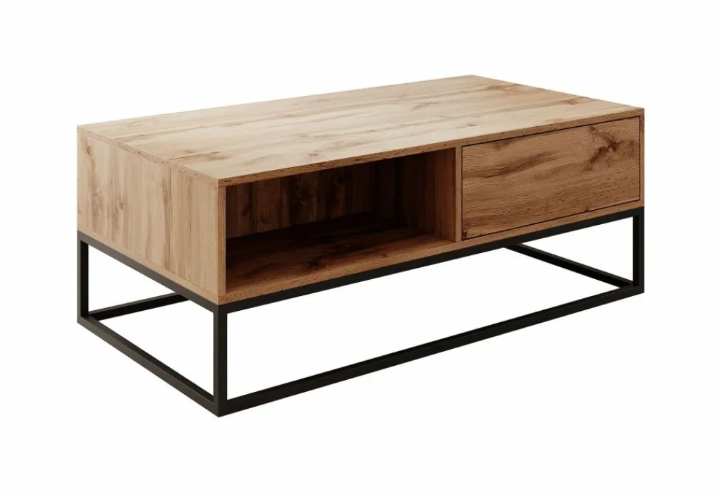 De tafel is voorzien van één lade (57 cm breed) en een open vak, ideaal voor het opbergen van afstandsbedieningen, tijdschriften of andere spullen die je binnen handbereik wilt houden.