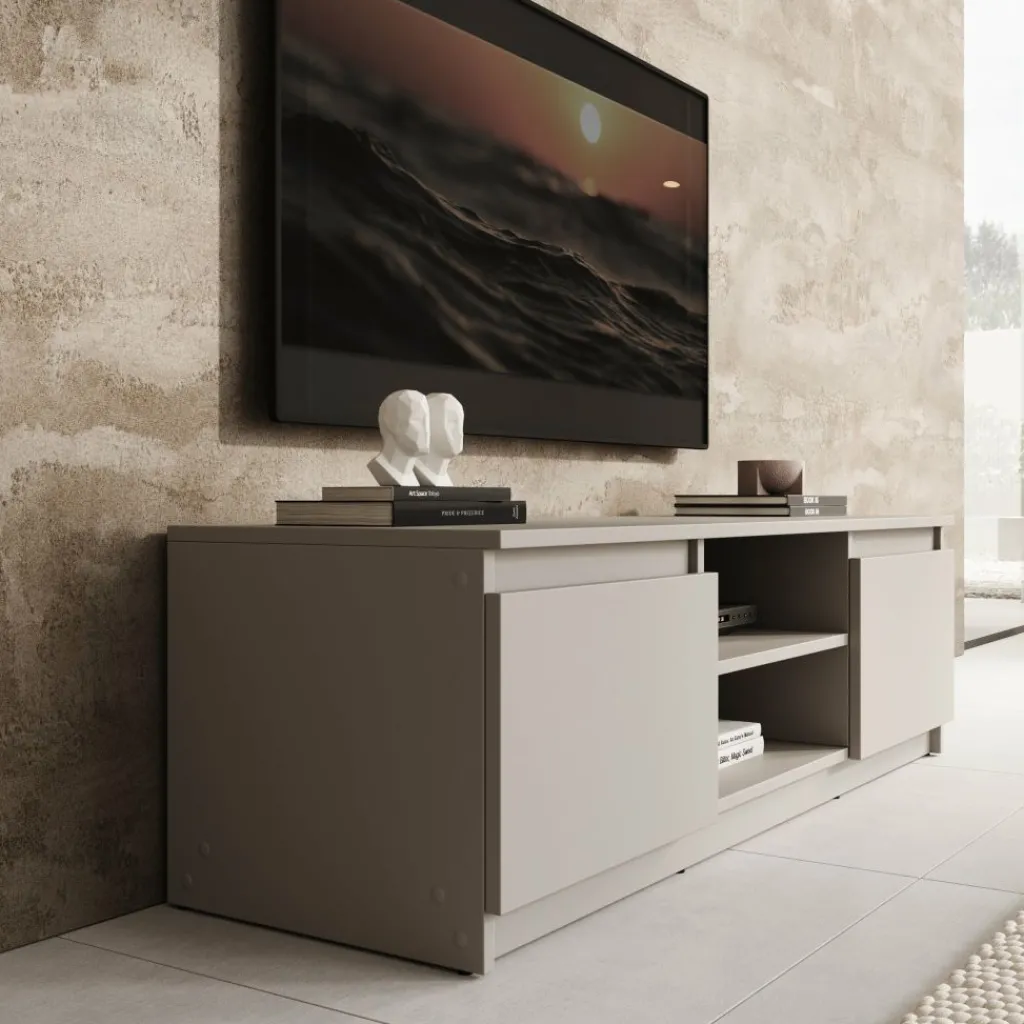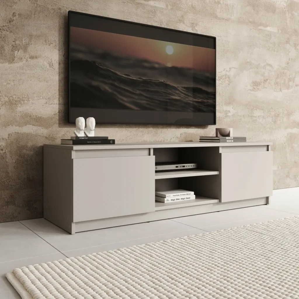 TV-Meubel Diaz is een modern tv-meubel met een strakke uitstraling. De Diaz is gemaakt van een stevige spaanplaatconstructie in een beige kleur.
