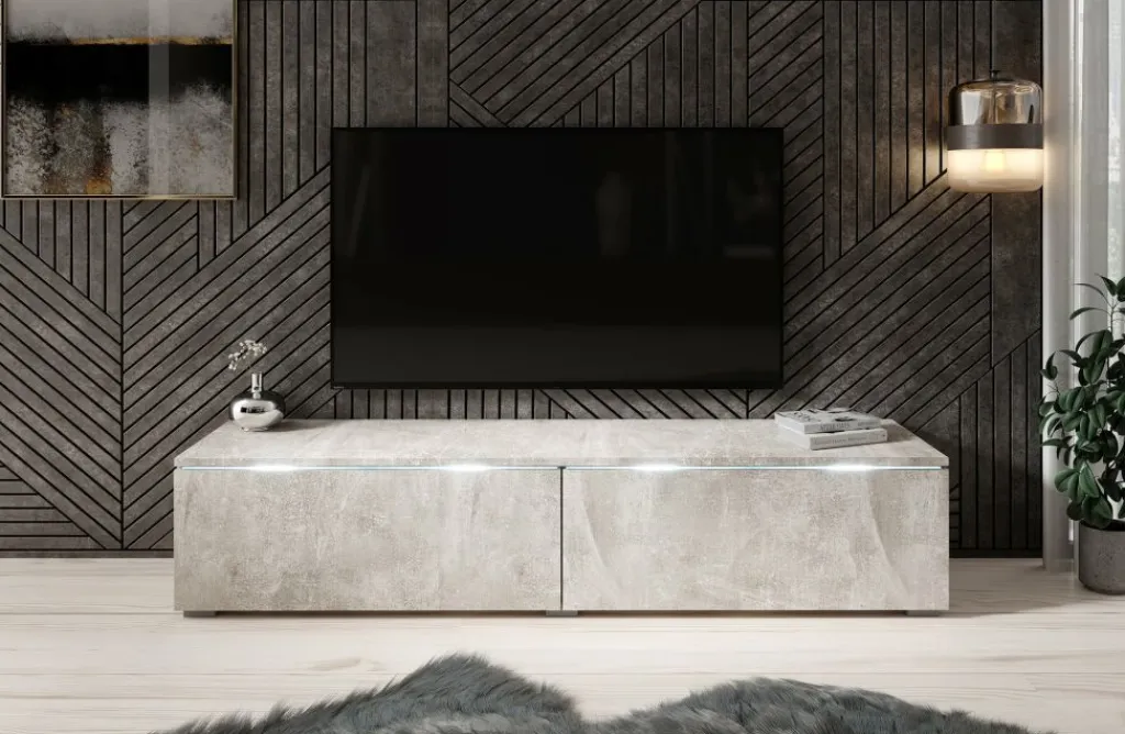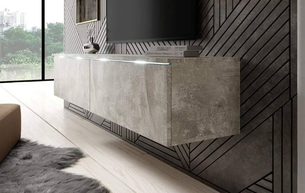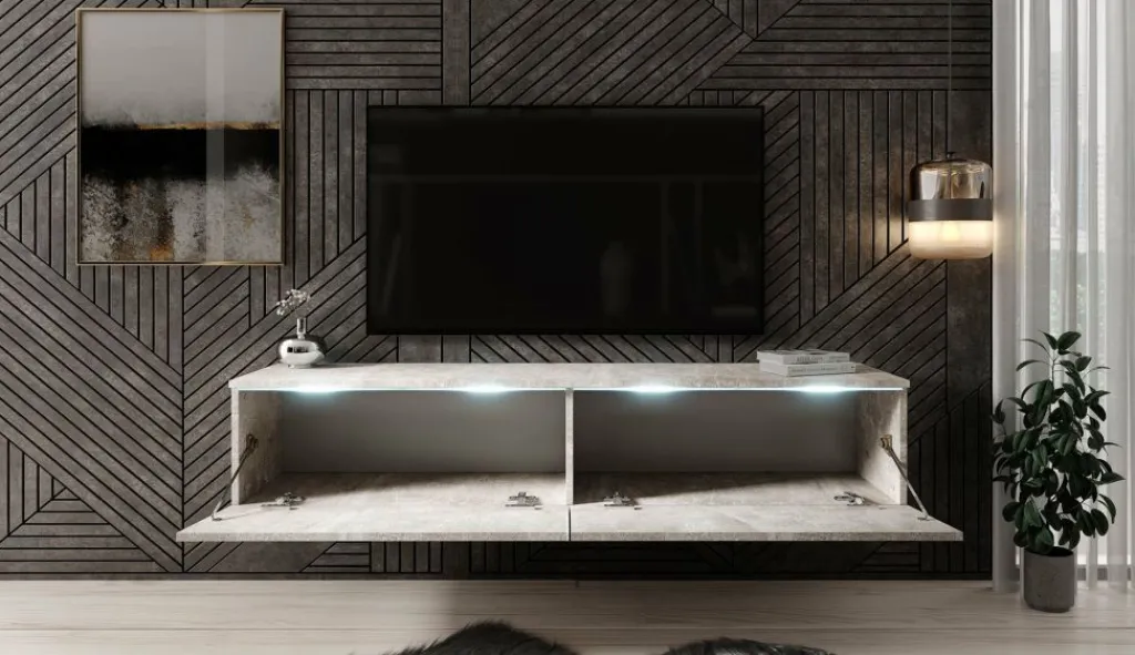 Het tv-meubel is aan de muur op te hangen. Toch liever een staand model? Dat kan ook, door eenvoudig de bijgeleverde pootjes te monteren onder het meubel. De pootjes zijn zilverkleurig, gemaakt van kunststof en hebben een hoogte van 2 cm.