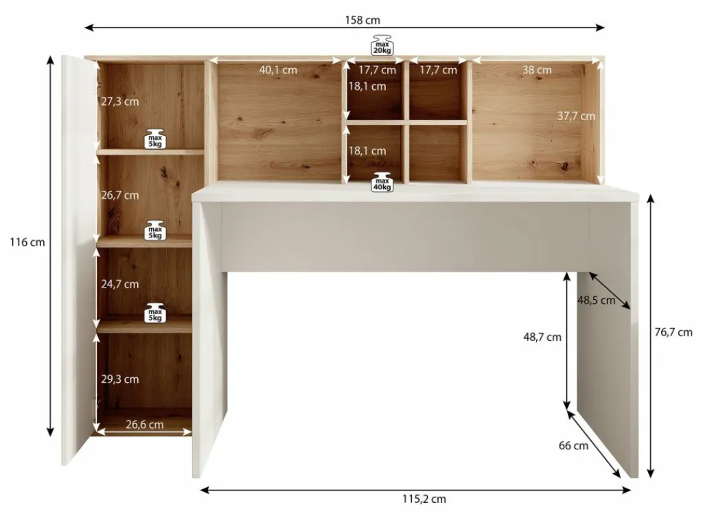 Bureau Elze is uniek aangezien je zelf de keuze hebt om de grote deur aan de linker- of rechterkant te monteren. Kies dus zelf wat je het handigst vindt!