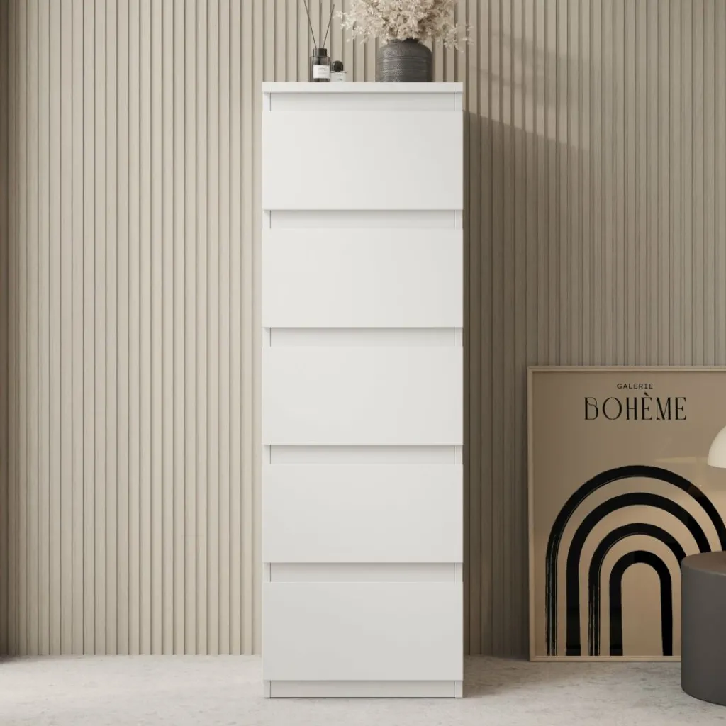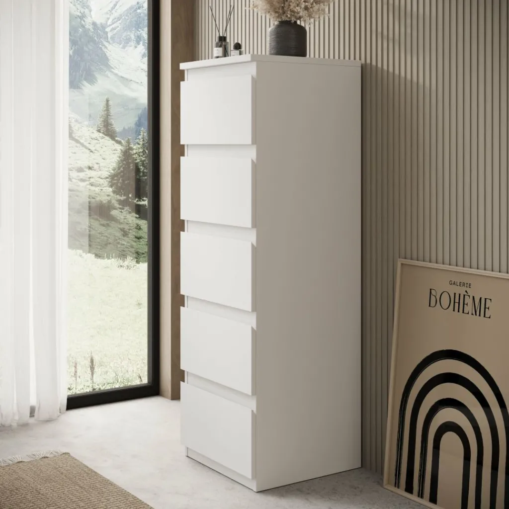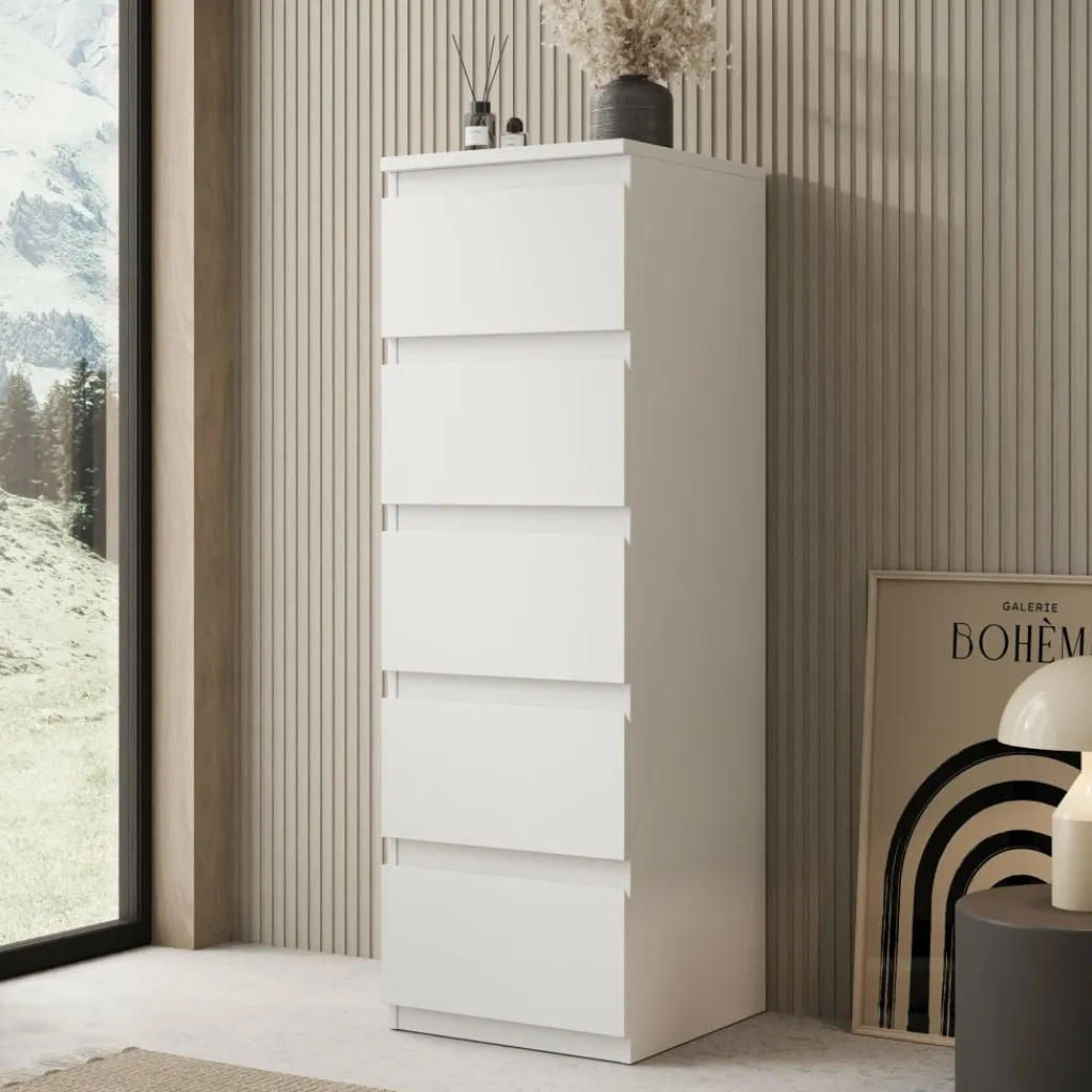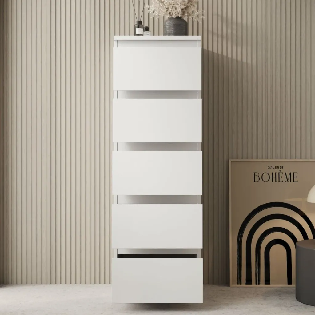 De Eskar schoenenkast in wit is een praktische oplossing voor het opbergen van schoenen in huis. Met een formaat van 42x42x128 cm blijft het meubel compact in de breedte en diepte, terwijl de hoogte zorgt voor voldoende opbergruimte. De witte afwerking oogt neutraal en sluit goed aan bij verschillende interieurstijlen, waardoor de kast geschikt is voor gebruik in de hal, slaapkamer of op de overloop.