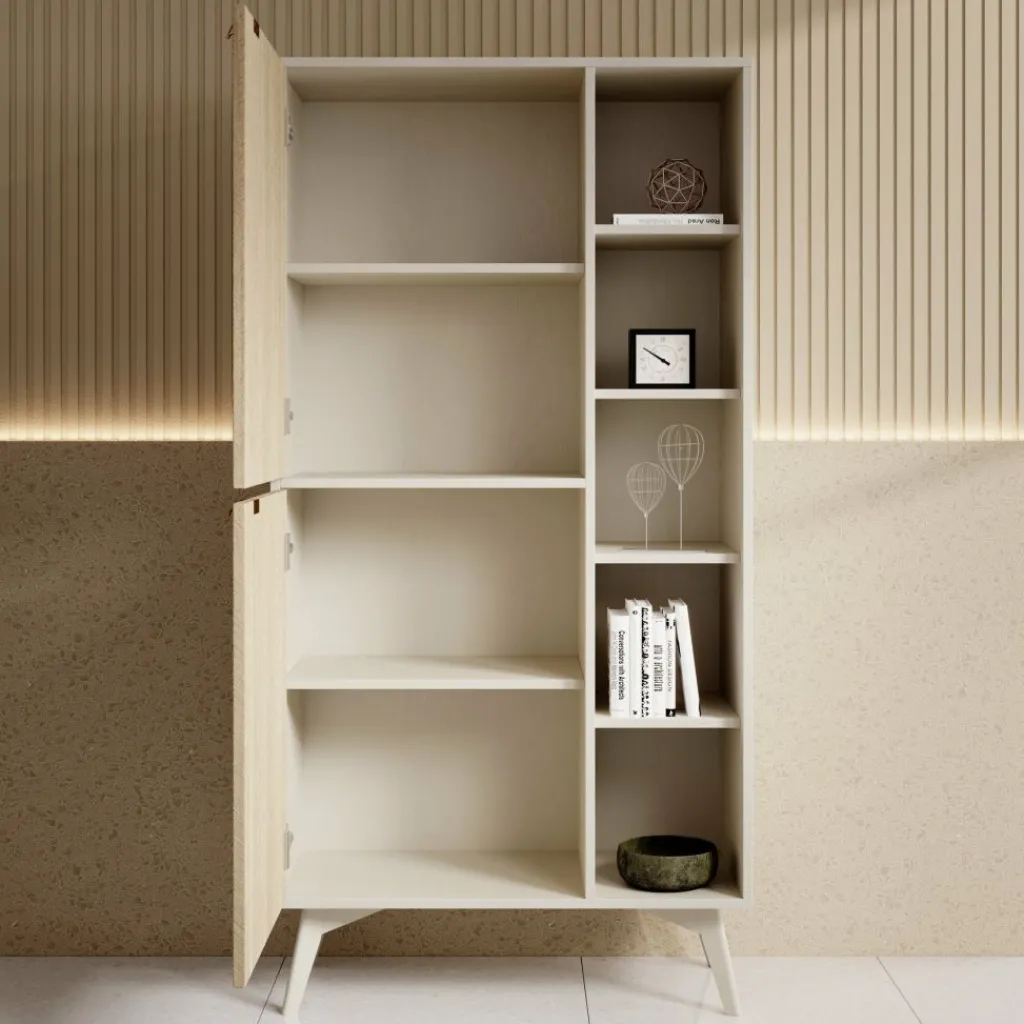 Boekenkast Essence is een moderne Japandi kast uitgevoerd in een beige kleur.