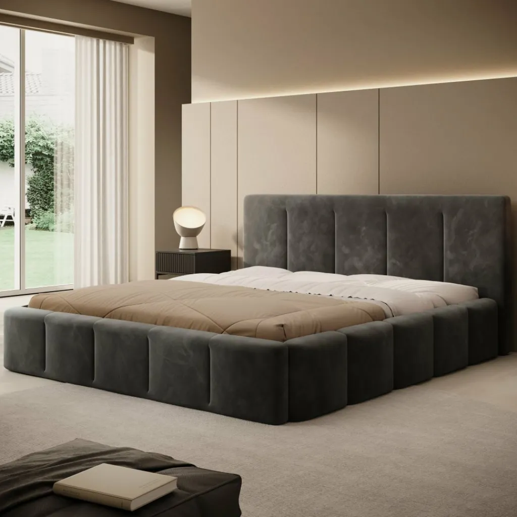 Voor wie graag ruim ligt of extra comfort wil delen, is het Excalibur-bed in 180×200 cm de ideale keuze. De royale afmetingen maken dit bed tot een luxe statement in de slaapkamer. De zwarte velvet stof voelt zacht aan en brengt een hotelgevoel in huis, terwijl het afgeronde ontwerp zorgt voor een moderne, stevige look.