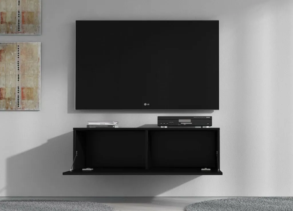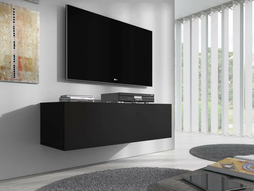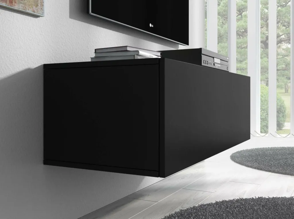 TV-Meubel Flame is een tv-meubel die passend is voor zowel woonkamers als slaapkamers. Deze is voorzien van 1 grote klapdeur. In de binnenkant zitten 2 vakken. De kast opent door erop te drukken. Aan de achterzijde bevindt zich geen gat om eventuele bedrading weg te werken. Het meubel is volledig mat zwart.