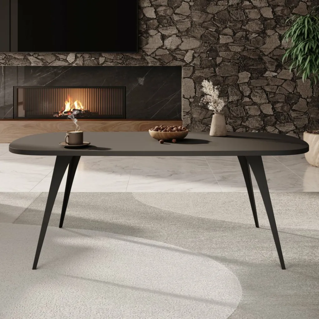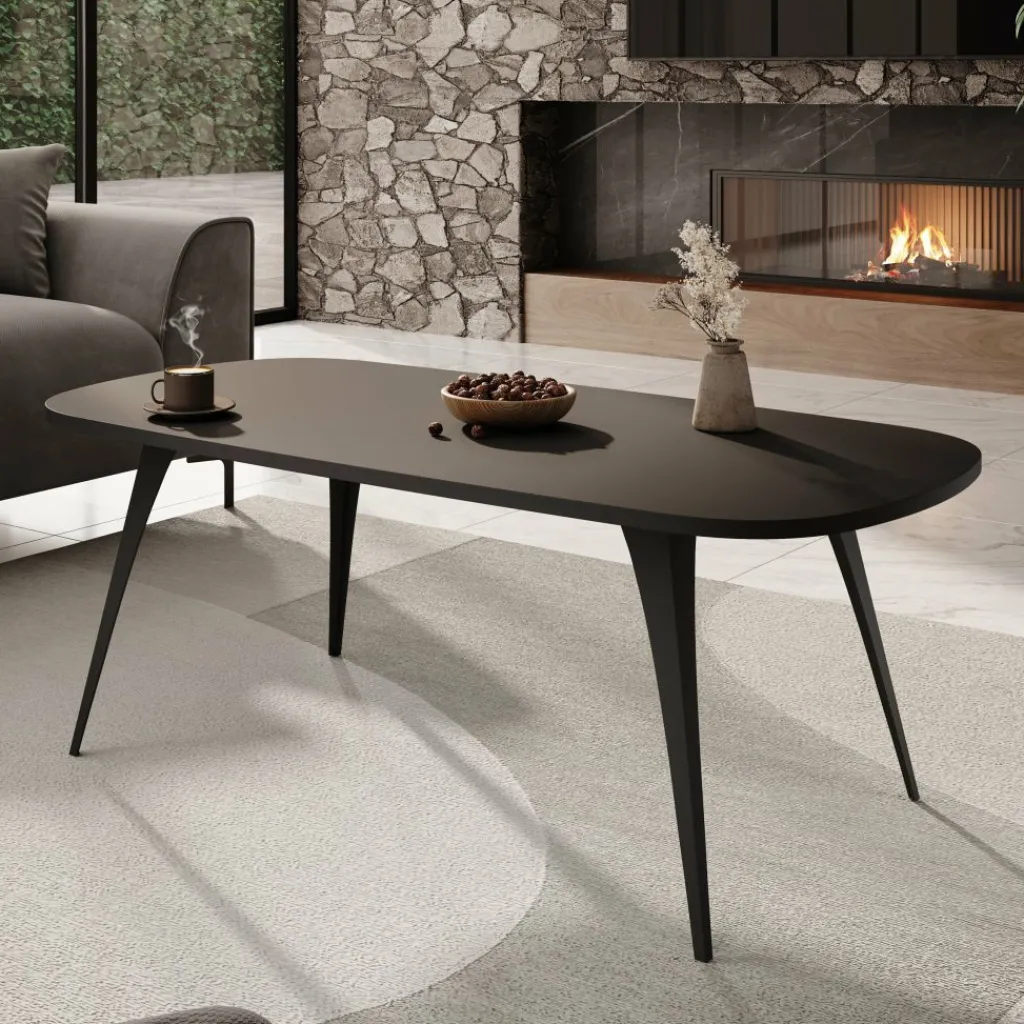 De Flix salontafel in zwart brengt een moderne en minimalistische uitstraling naar jouw woonkamer. Met zijn ovale vorm en strakke lijnen vormt deze tafel een stijlvol middelpunt dat moeiteloos te combineren is met verschillende interieurstijlen.