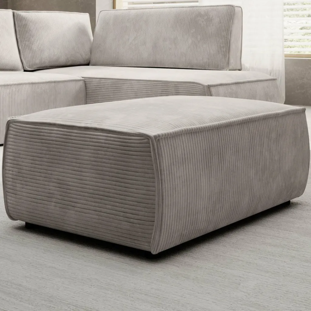 Poef Foster is een multifunctioneel model, uitgevoerd in zachte ribstof. Dankzij de afmetingen van 102×69×42 cm biedt deze poef voldoende ruimte om te gebruiken als extra zitplaats, voetenbank of salontafel.
