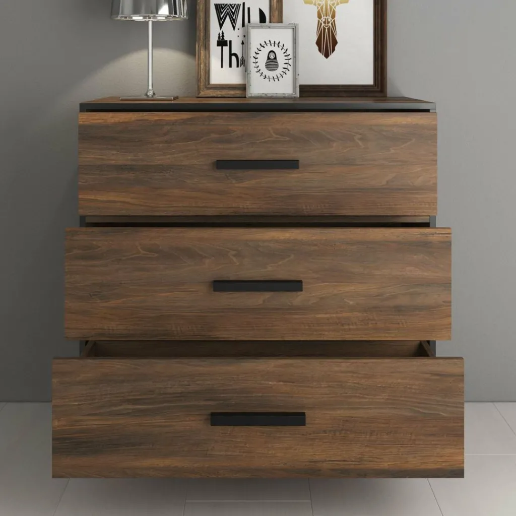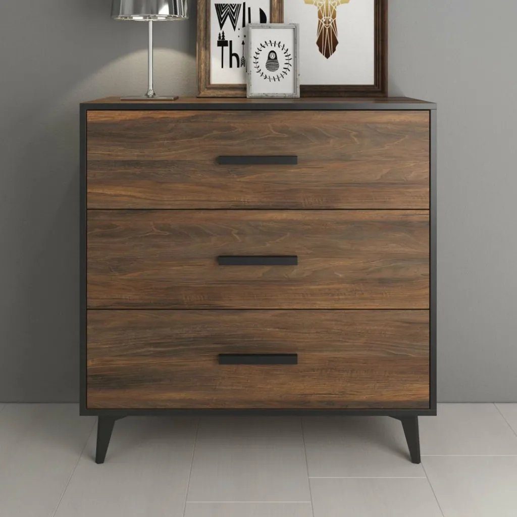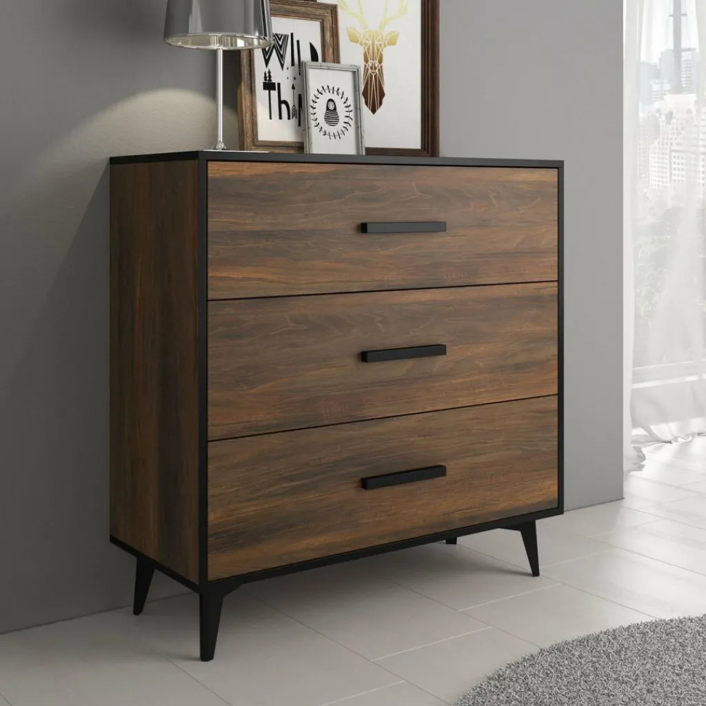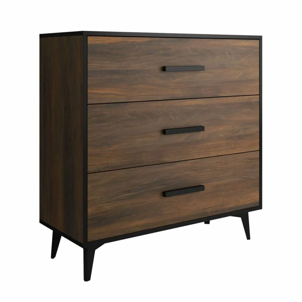 Commode Frey is een modern en praktische kast welke geschikt is voor bijna iedere ruimte in huis. Dit meubel bestaat uit 3 brede lades met handgrepen. De commode is uitgevoerd in donker eiken met zwarte details. Uiteraard is dit product ook te gebruiken als dressoir in de woonkamer, keuken of hal.