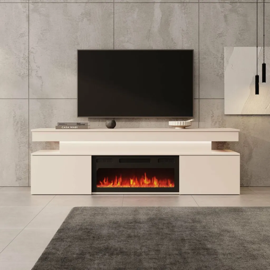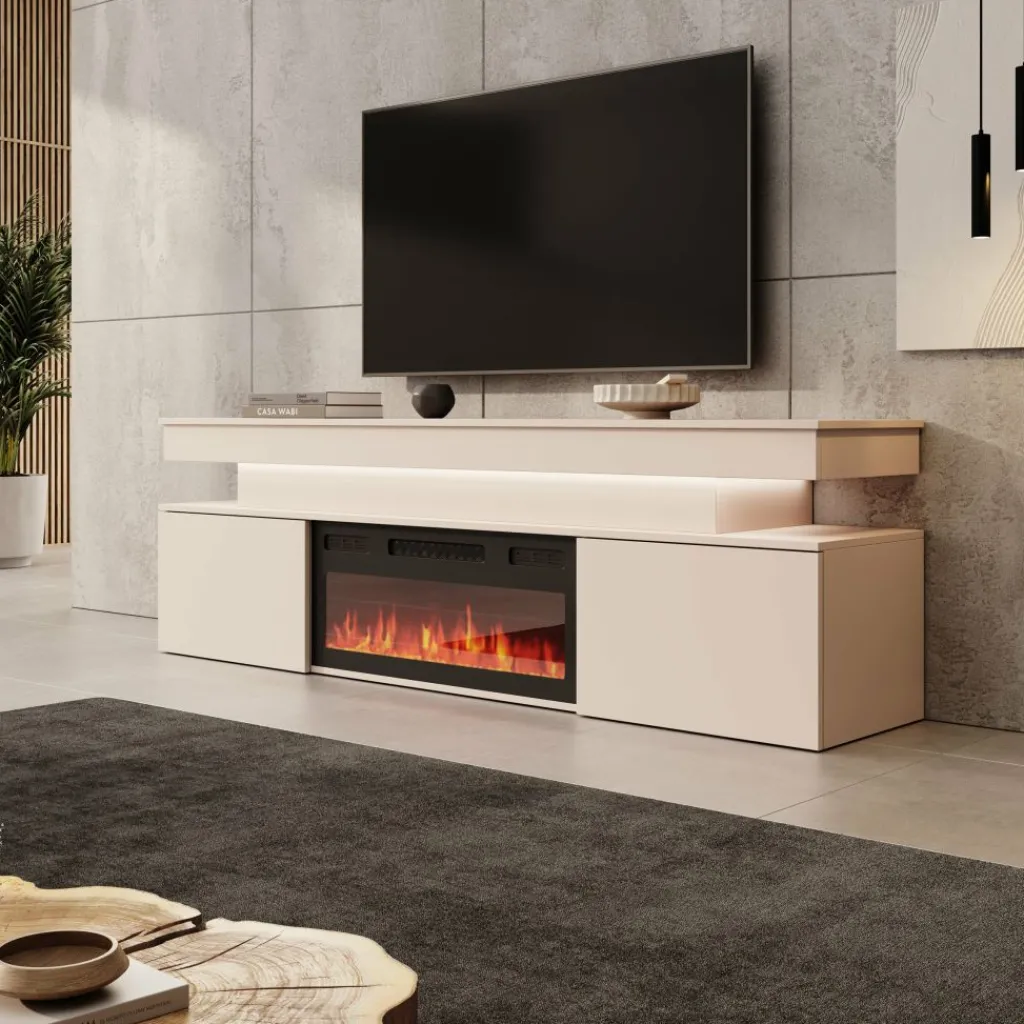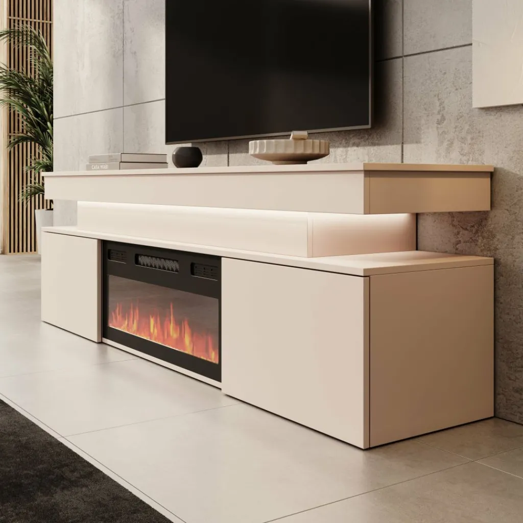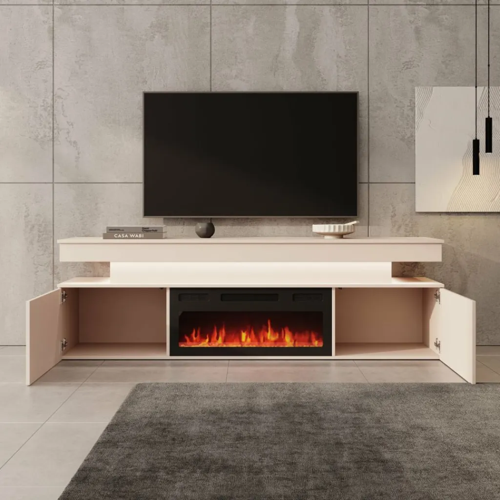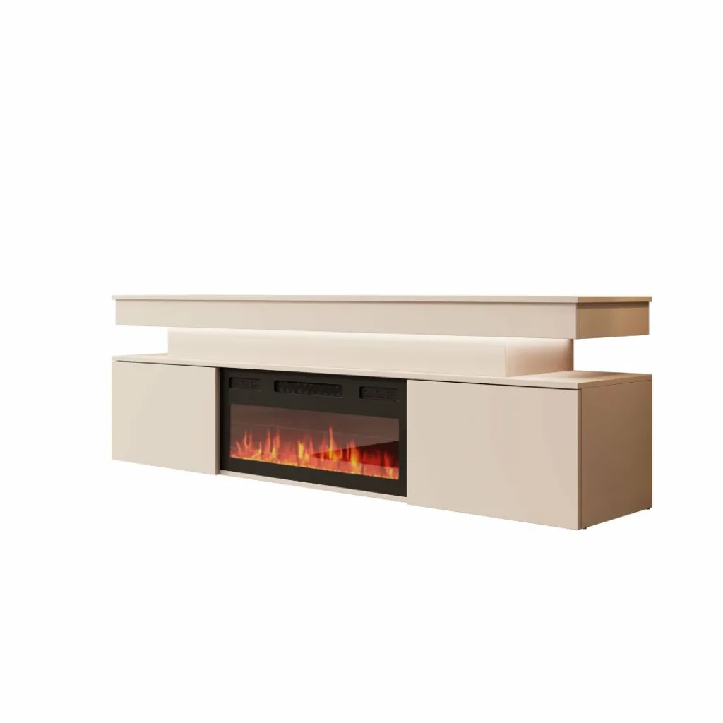 Centraal in het meubel is een elektrische sfeerhaard geïntegreerd. Deze haard beschikt over LED-vlammen en een instelbare verwarmingsfunctie met een temperatuurbereik van 18 tot 35 °C. De vlamfunctie en verwarmingsfunctie kunnen onafhankelijk van elkaar worden gebruikt. De haard werkt op 220–240V / 50Hz en heeft een nominaal vermogen van 1400–1600W. Bediening is mogelijk via het bedieningspaneel of de meegeleverde afstandsbediening. De haard is afgewerkt met gehard glas en haardkristallen.