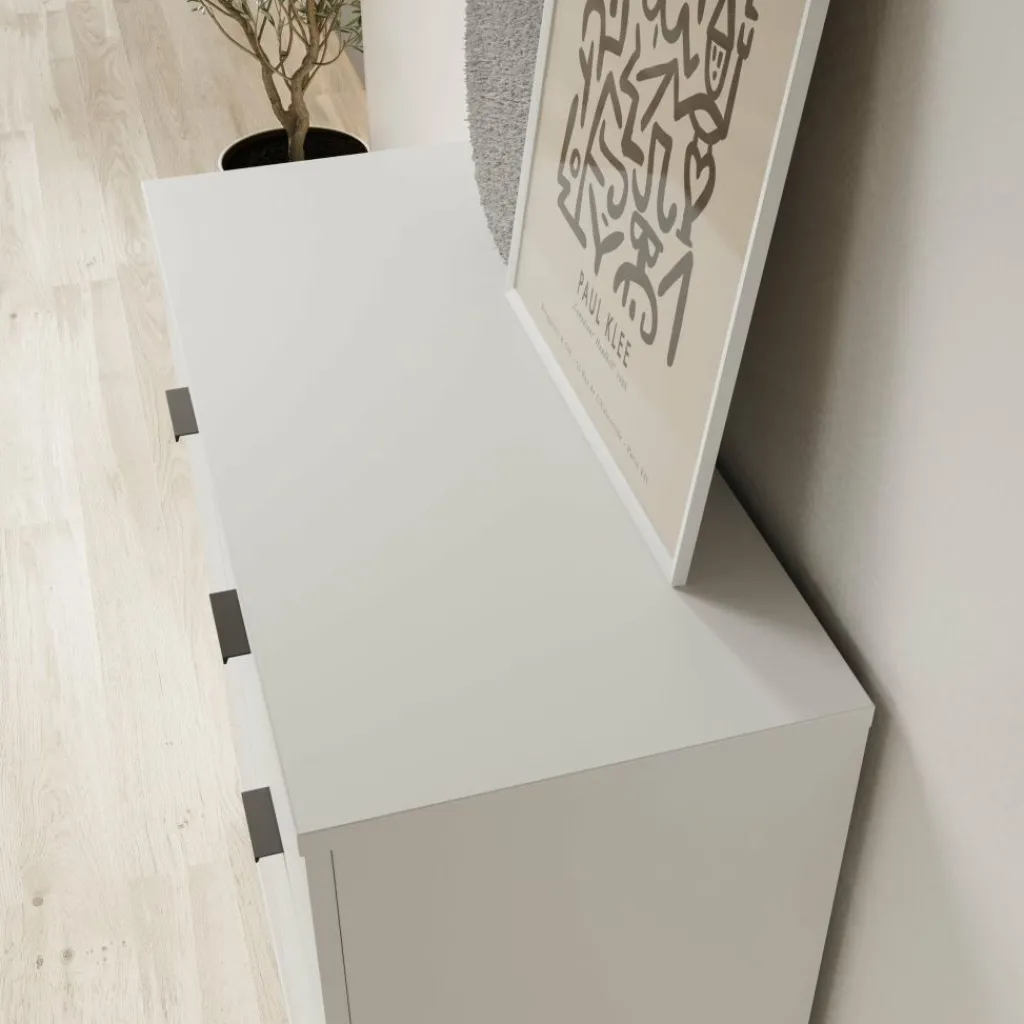 Het Galeno 2 dressoir staat stabiel op lage pootjes en heeft een maximaal draagvermogen van 40 kg. Het bovenblad is geschikt voor decoratieve objecten of functionele accessoires.