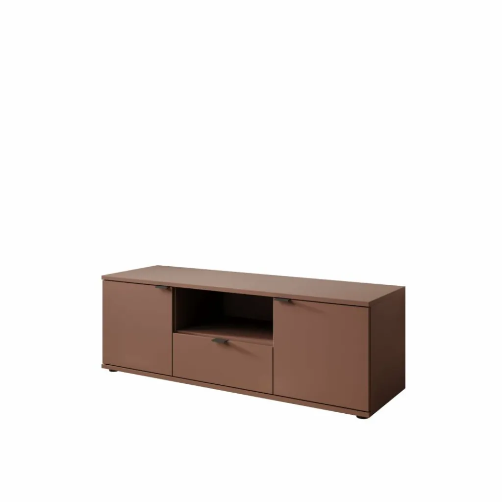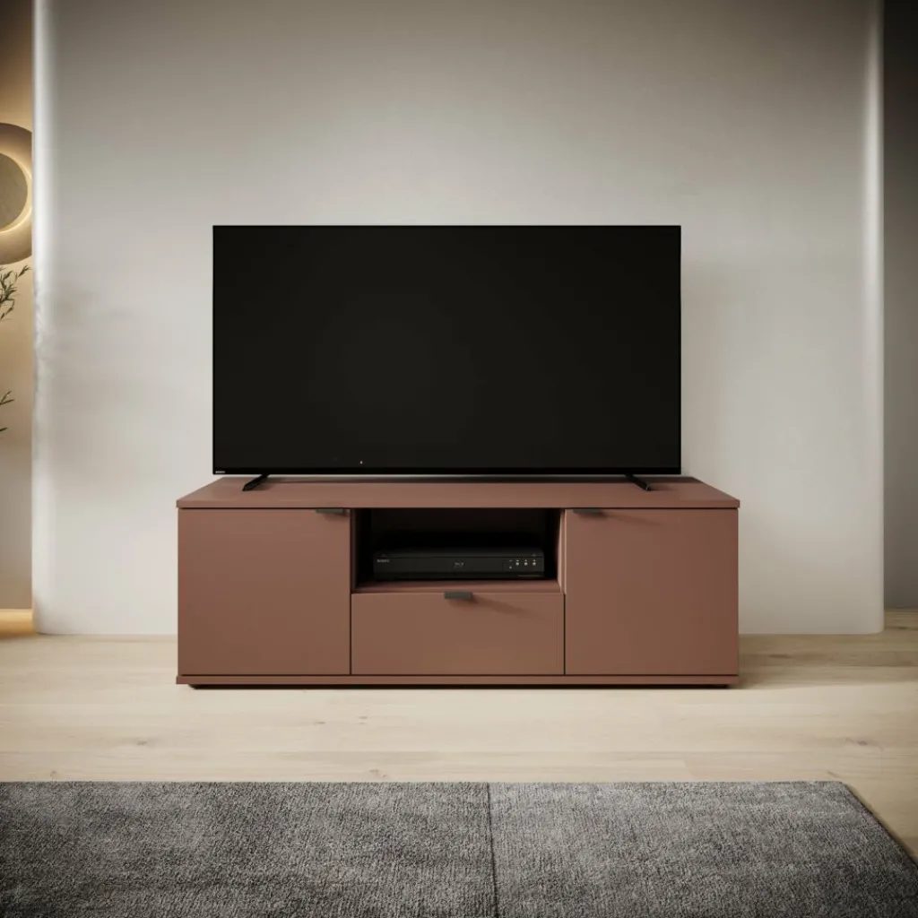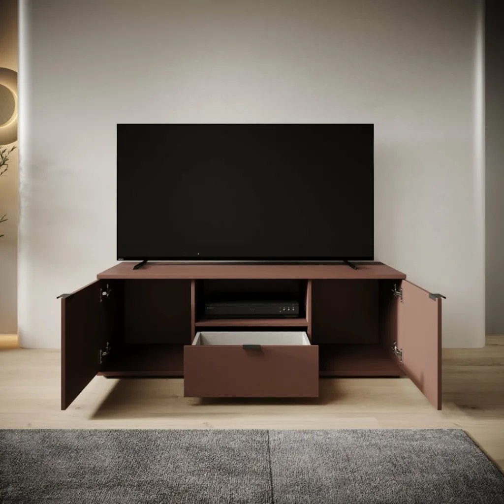 Het Galeno tv-meubel in oudroze heeft een rustige en strakke vormgeving en is praktisch ingedeeld voor dagelijks gebruik. Met zijn afmetingen van 130x41x44 cm biedt het meubel voldoende ruimte zonder veel plaats in te nemen. De combinatie van een open vak, een lade en afgesloten opbergruimte achter de deuren zorgt voor een logische indeling voor apparatuur en losse spullen. Het meubel heeft een maximaal draagvermogen van 40 kg. Het open vak kan belast worden tot 8 kg en de lade tot maximaal 5 kg, wat geschikt is voor lichte accessoires en elektronica.