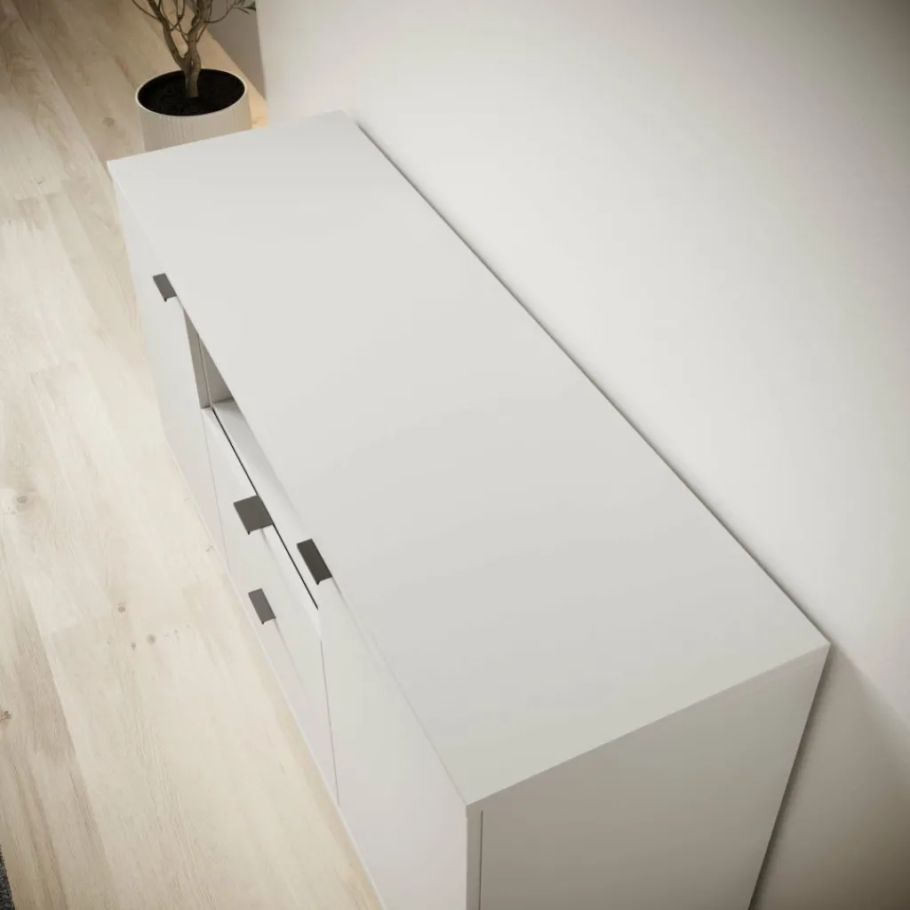 De lades hebben een maximaal draagvermogen van 5 kg per lade. De legplanken achter de deuren kunnen elk tot 15 kg dragen. Dit maakt het meubel geschikt voor dagelijks gebruik.