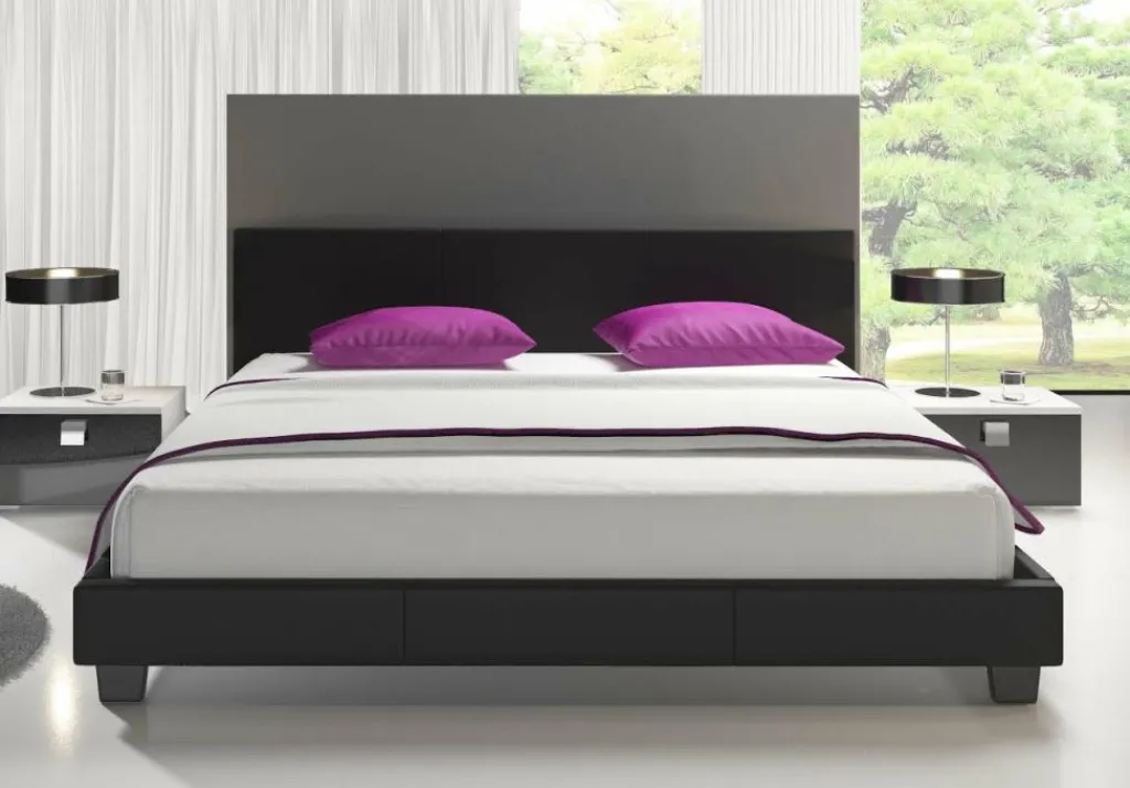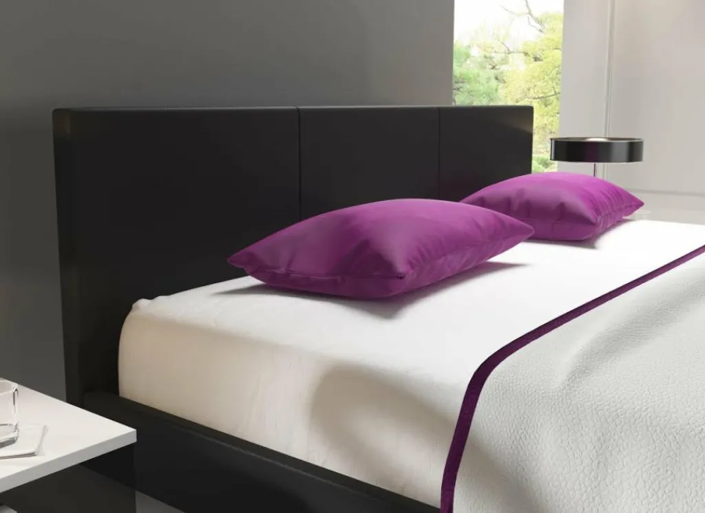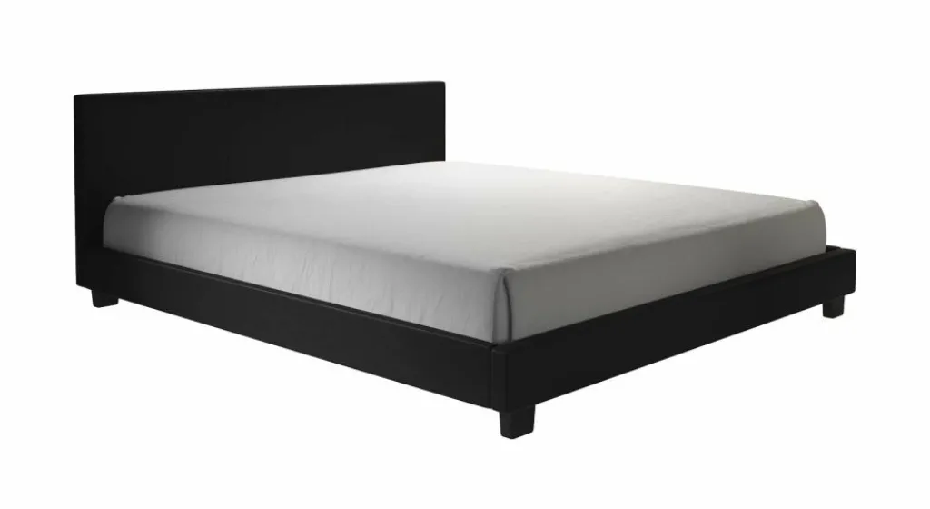 Tweepersoonsbed George is een modern bed met een ingetogen design. Dit model is geheel bekleed met sterk en onderhoudsvriendelijk kunstleer in een zwarte kleur. Inbegrepen in de prijs is een standaard lattenbodem voor matrasmaat 140×200 cm. Het hoofd- en voetenbord zijn voorzien van extra stiknaden. Dit bed heeft een stevige houten constructie en staat op vier massieve poten. Deze poten zijn 8 cm hoog. Tweepersoonsbed George heeft een draagvermogen van 100 kg per ligzijde.