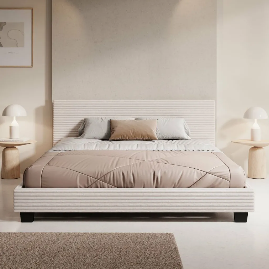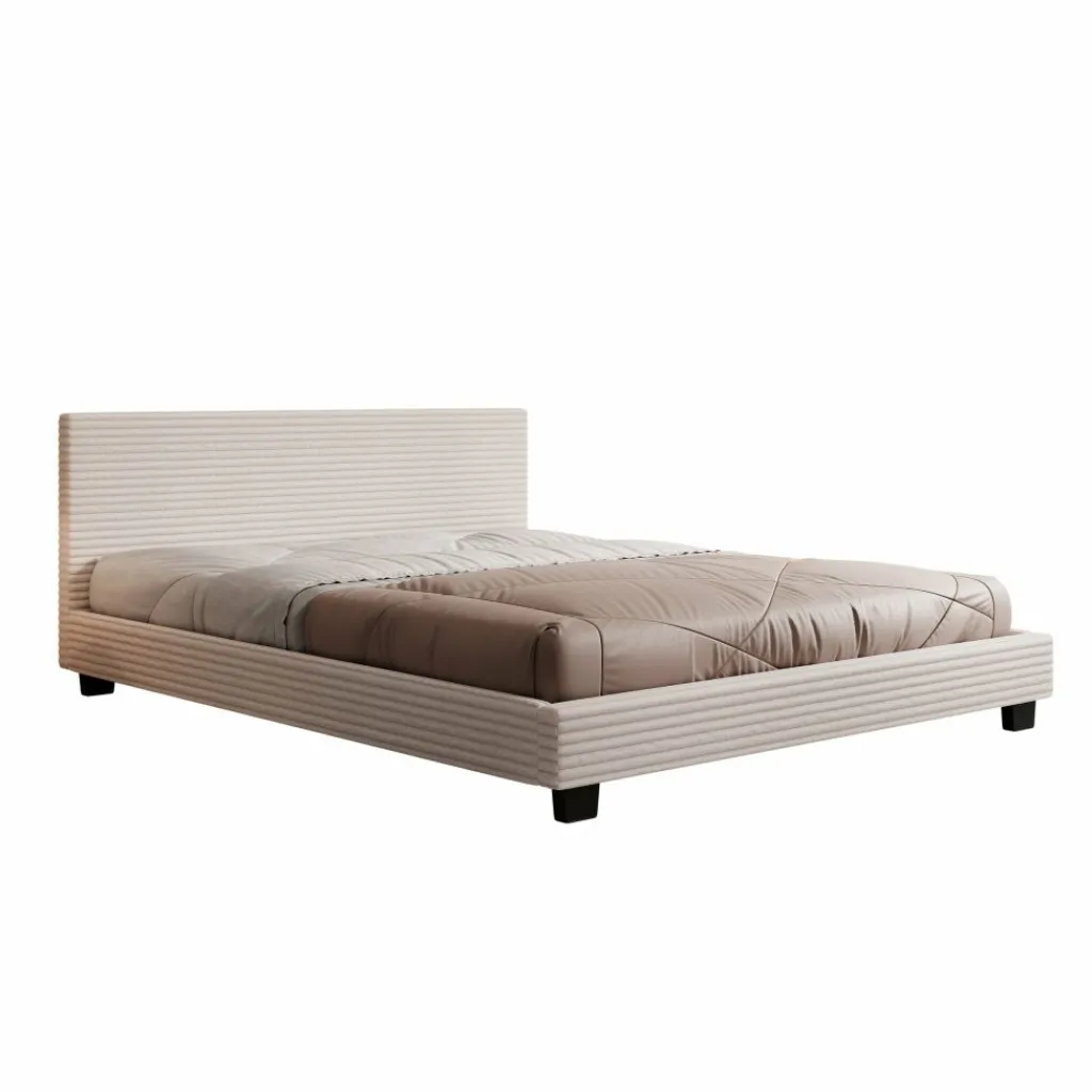 Het George tweepersoonsbed uitgevoerd in beige ribstof brengt een stijlvolle en warme sfeer in de slaapkamer. Het ligvlak van 160×200 cm biedt volop comfort voor twee personen. De fijne ribstructuur geeft het bed een speels accent, terwijl het eenvoudige design en de zwarte poten zorgen voor een strakke uitstraling. Een ideale keuze voor wie functionaliteit wil combineren met een moderne look. Dit bed wordt geleverd zonder matras, zodat je zelf de vrijheid hebt om een matras te kiezen die aansluit bij jouw slaapwensen.