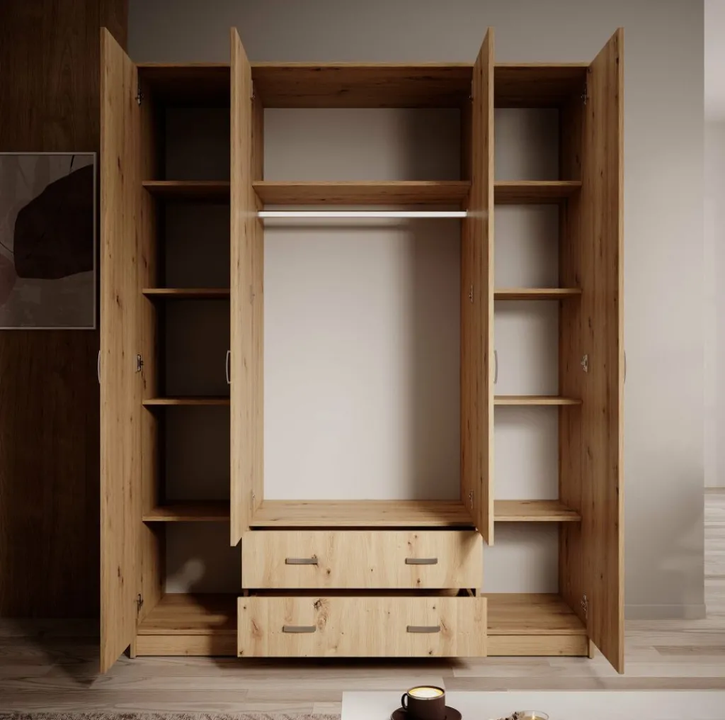 De Hinto is uitgevoerd met een eikenkleurige lamineer laag. Hierdoor krijgt de kast de uitstraling van echt hout.