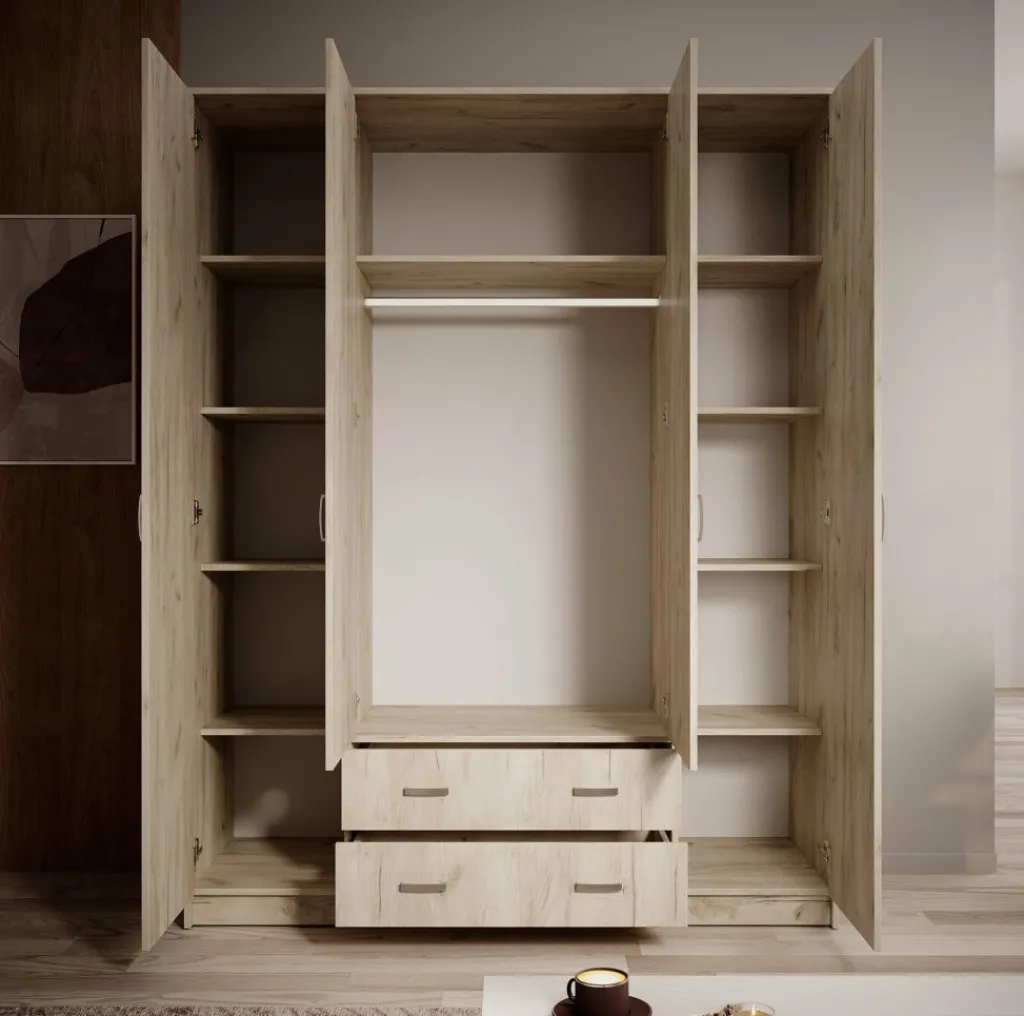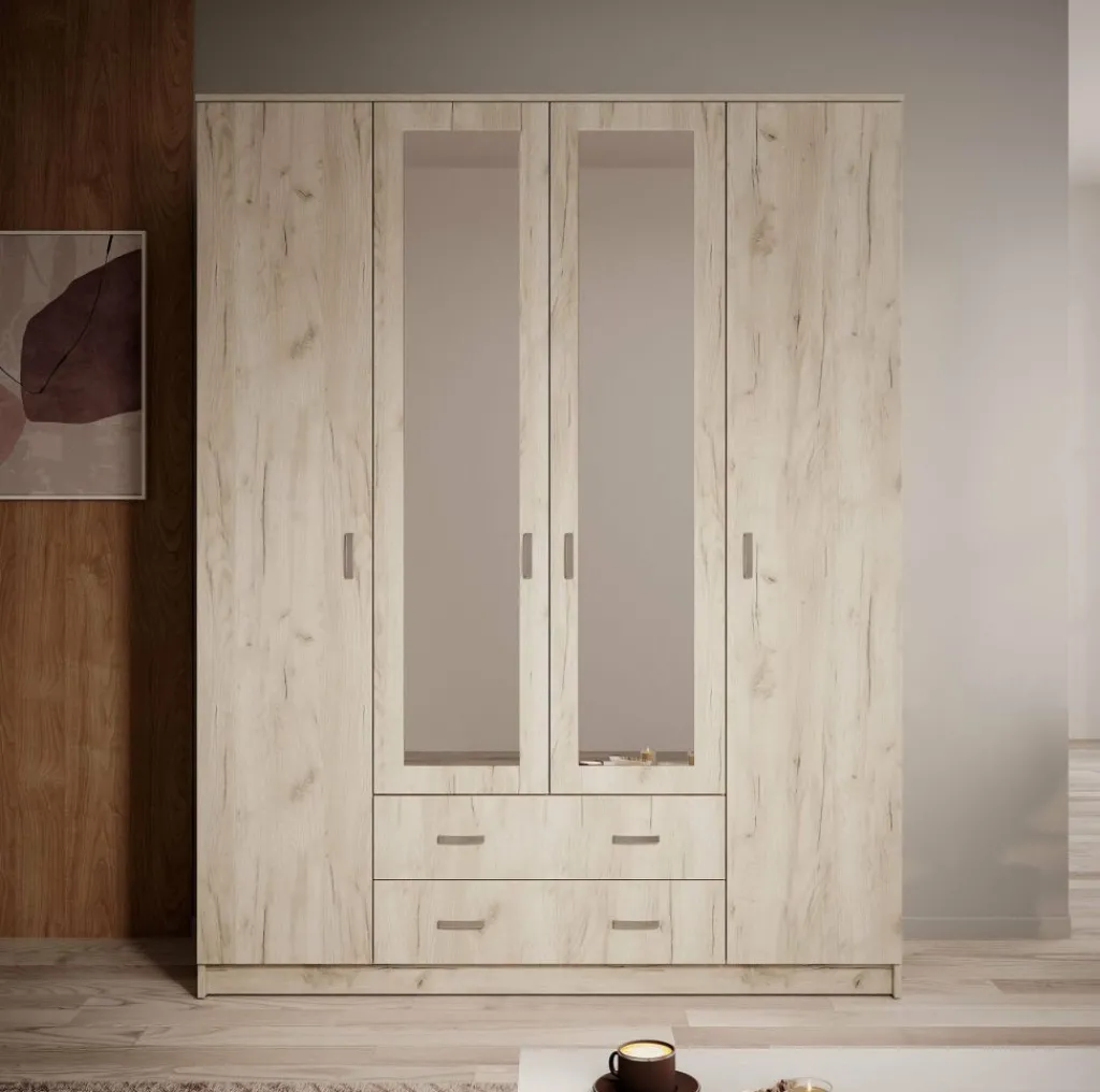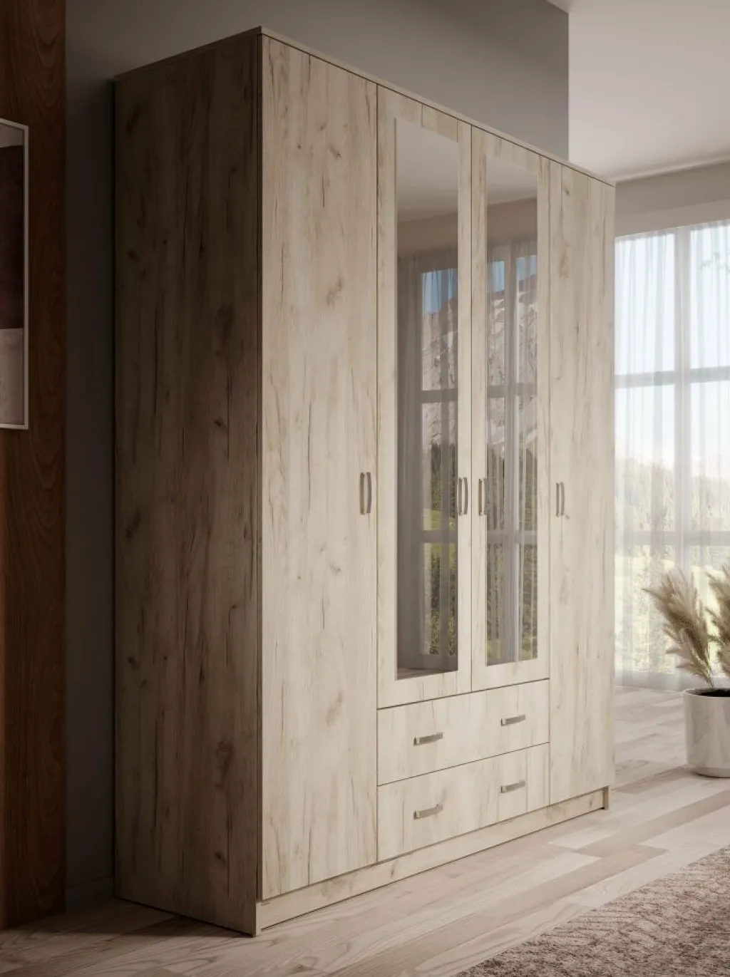 De Hinto is uitgevoerd met een grijs eiken kleurige lamineer laag. Hierdoor krijgt de kast de uitstraling van echt hout.
