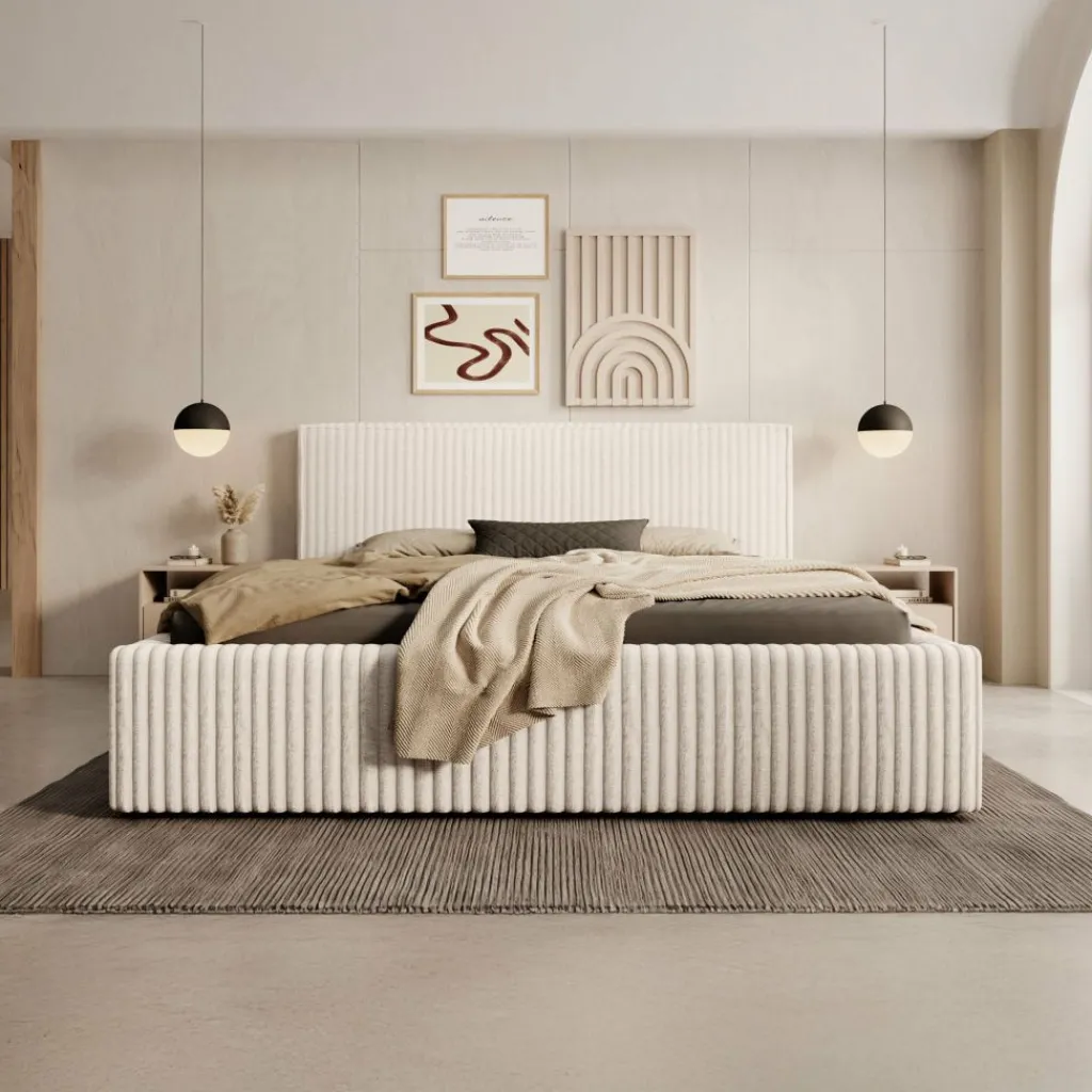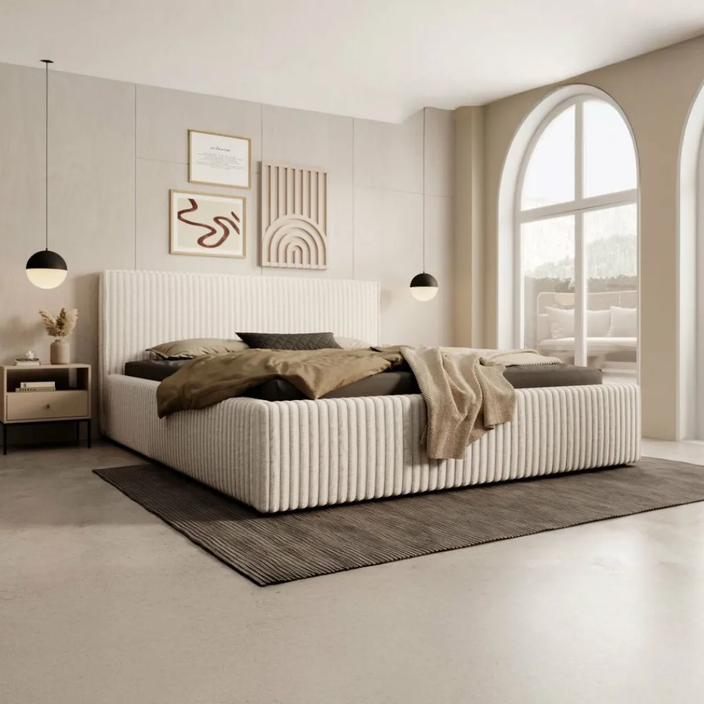 Tweepersoonsbed Infinity beschikt over een groot hoofdbord met een speelse stiknaad. Het bed is eenvoudig te monteren. Wordt met lattenbodem geleverd, dus je hoeft alleen nog maar een matras aan te schaffen.