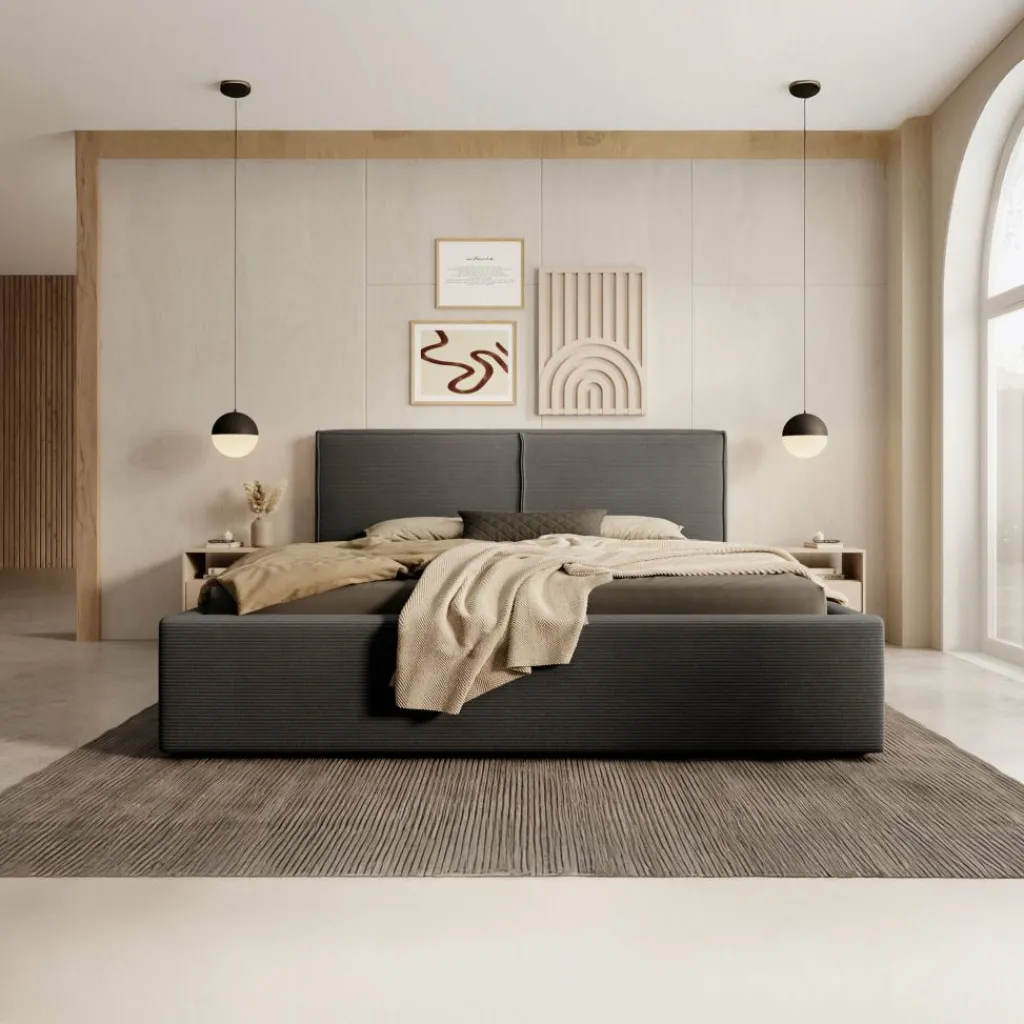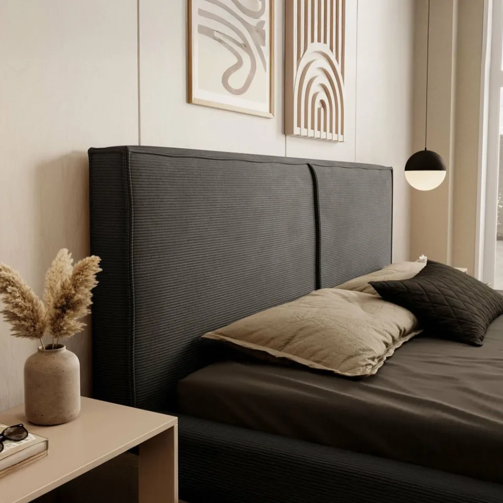 Tweepersoonsbed Infinity beschikt over een groot hoofdbord met een speelse stiknaad. Het bed is eenvoudig te monteren. Wordt met lattenbodem geleverd, dus je hoeft alleen nog maar een matras aan te schaffen.