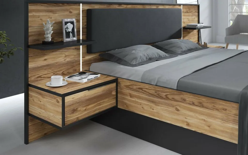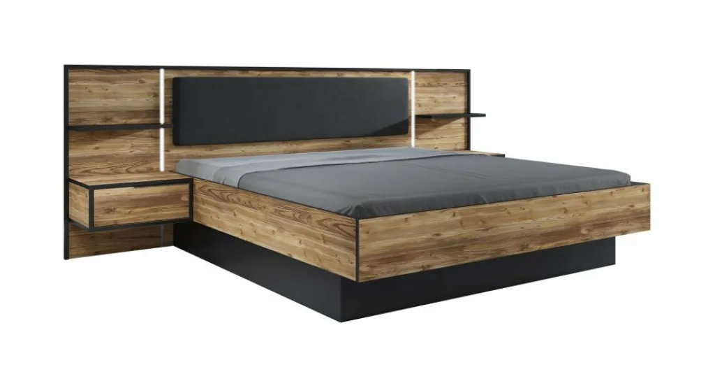 Tweepersoonsbed Jacob is een industrieel bed en uitgevoerd in een eiken met zwarte kleur. Het hoofdbord beschikt over een kunstleren vlak. Daarnaast beschikt het hoofdbord over LED-verlichting. Het bed staat op een zwart onderstel wat het bed een industrieel tintje geeft. Een matras en lattenbodem worden niet bijgeleverd. Het bed is perfect te combineren met andere meubels uit de Jacob serie.