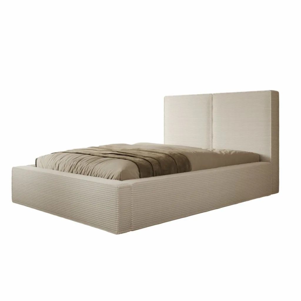 Met een ligoppervlak van 140×200 cm is dit bed perfect voor kleinere slaapkamers of voor wie graag knus samen slaapt. Het brede hoofdbord, uitgevoerd in dezelfde ribstof, maakt het bed niet alleen comfortabel om tegenaan te leunen, maar geeft ook een luxueuze uitstraling aan het geheel.