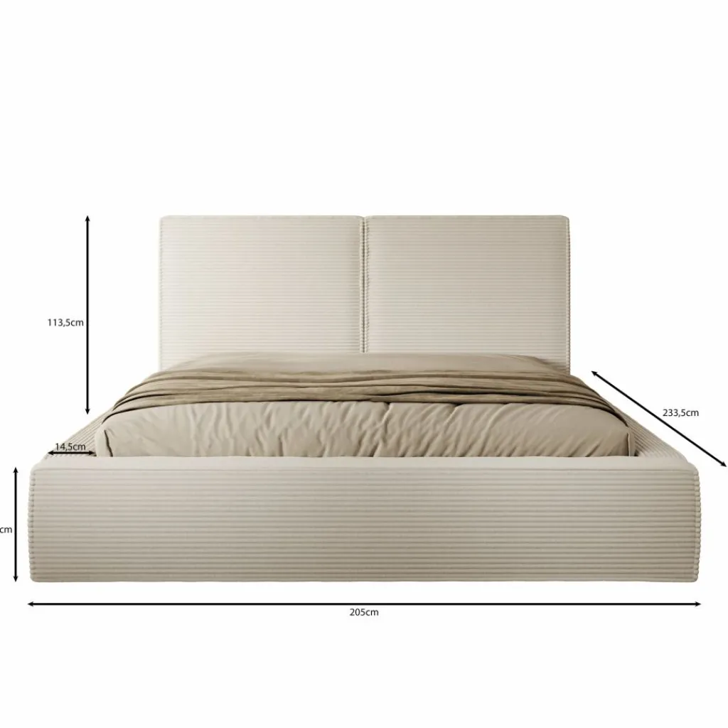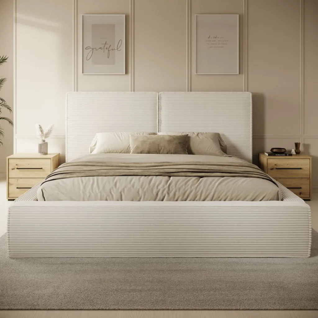 Breng warmte en elegantie in je slaapkamer met het Jarviz tweepersoonsbed in beige ribstof. Dit ruime bed combineert modern design met de zachte uitstraling van ribstof, waardoor een stijlvol en comfortabel geheel ontstaat.