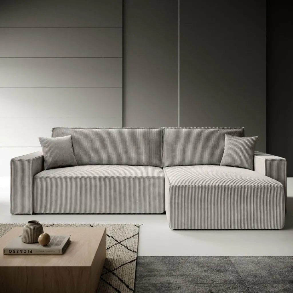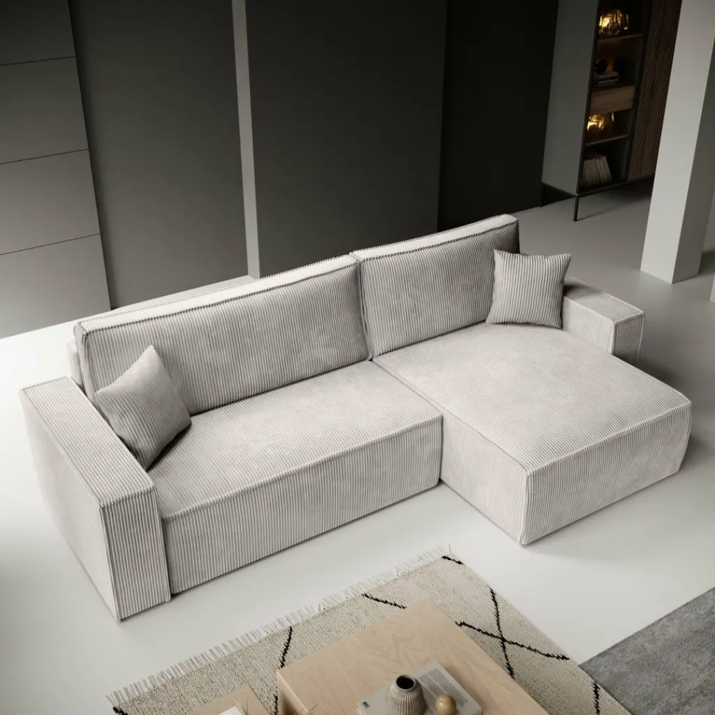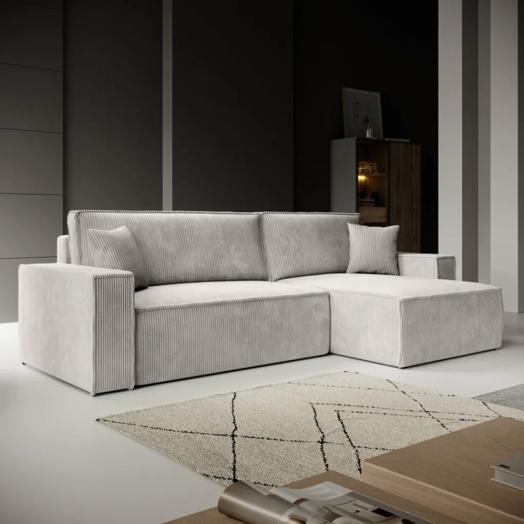 Hoekbank Kandahar Maxi L is een symmetrische hoekbank in L-vorm geschikt voor 3 personen. Dit houdt in dat je de lounge zowel aan de linker- als aan de rechterkant kunt plaatsen. De bank bestaat uit een chaise-longue en een 2-zitter. De Kandahar Maxi L is bekleed met een zachte ribstof in beige kleur.