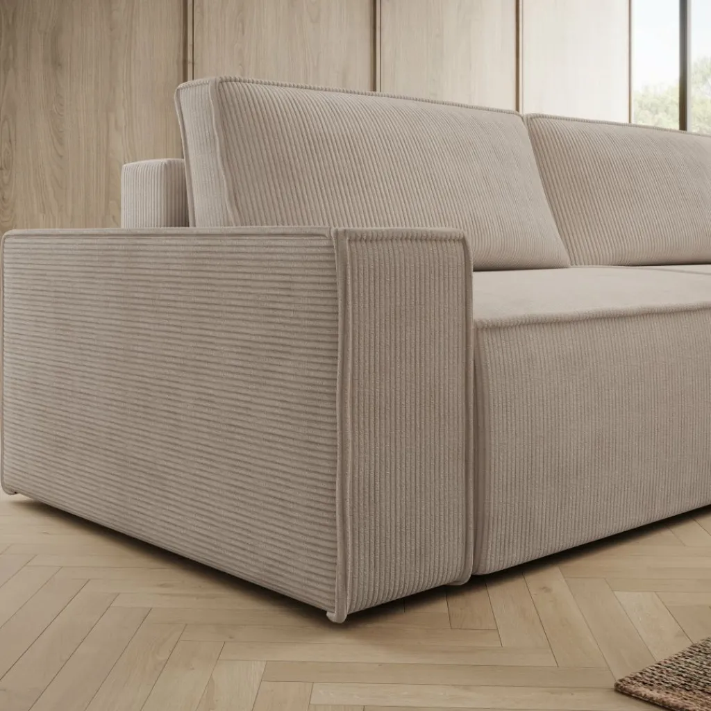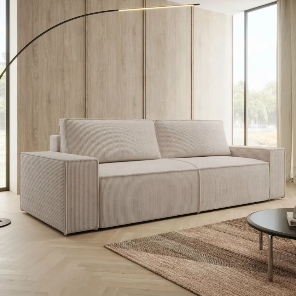 De Khaos 3-zitsbank in beige ribstof is een stijlvolle en comfortabele toevoeging aan elk interieur. Het tijdloze ontwerp en de zachte, duurzame ribstof geven de bank een warme en uitnodigende uitstraling. Dankzij de ruime afmetingen van 245x90x82 cm is er genoeg plek om heerlijk te ontspannen, of het nu is om samen een film te kijken of een moment voor jezelf te nemen.